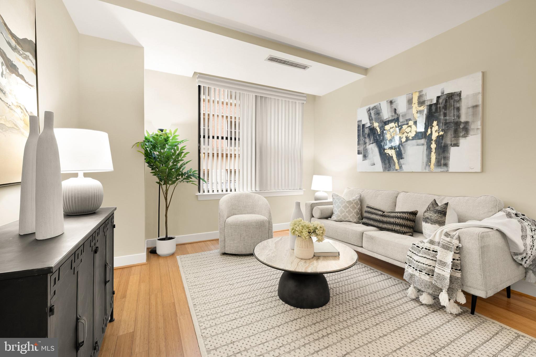Prominently occupying a large parcel in the heart of Washington's glittering West End is The Columbia, a 2006 reinterpretation of a historic 1918 building, creating 225 luxury condominiums of the highest caliber. Approached by a sweeping, verdant crescent drive, the building's classic red brick facade is flanked by twin contemporary glass additions to create a dramatic, architecturally significant first impression. Within this rarified air is Residence 234, a one bedroom and den unit spanning a generous 812 square feet of immaculately maintained, sumptuously appointed living space. A vestibule provides a dignified entrance to the home. Immediately adjacent is the private den, a quiet space tucked away and ideally suited for a private office, reading nook, or yoga studio. At the heart of the floor plan is the chef's kitchen. Elegant Poggenpohl cabinetry, granite countertops, and an integrated breakfast bar open up to the main living space. A commercial-grade Viking range and full-size SubZero refrigerator represent top-of-the-line equipment and are an indicator of the no-expenses-spared ethos found throughout. Bright and airy, the main living area is flooded with natural light from a large double window. Likewise, the bedroom suite features floor-to-ceiling glass through which the private balcony can be accessed. A pass-through dressing area framed by ample walk-in closet space leads to the primary bath. Clad in marble, the luxurious retreat boasts a large vanity and a combination tub and shower. A private, underground parking space conveys. An amenity-rich building, The Columbia features a rooftop swimming pool and sundeck, state-of-the-art fitness center, 24-hour front desk with security, billiards room, recreation room, business center, on-site management and maintenance, as well as available extra storage units for a true turnkey lifestyle. A Trader Joe's is accessible from within the building, and the location is convenient to West End's famous restaurants, shops, and public transit. Blending historic character with a contemporary lifestyle, Residence 234 at The Columbia represents the apex of upscale urban living.