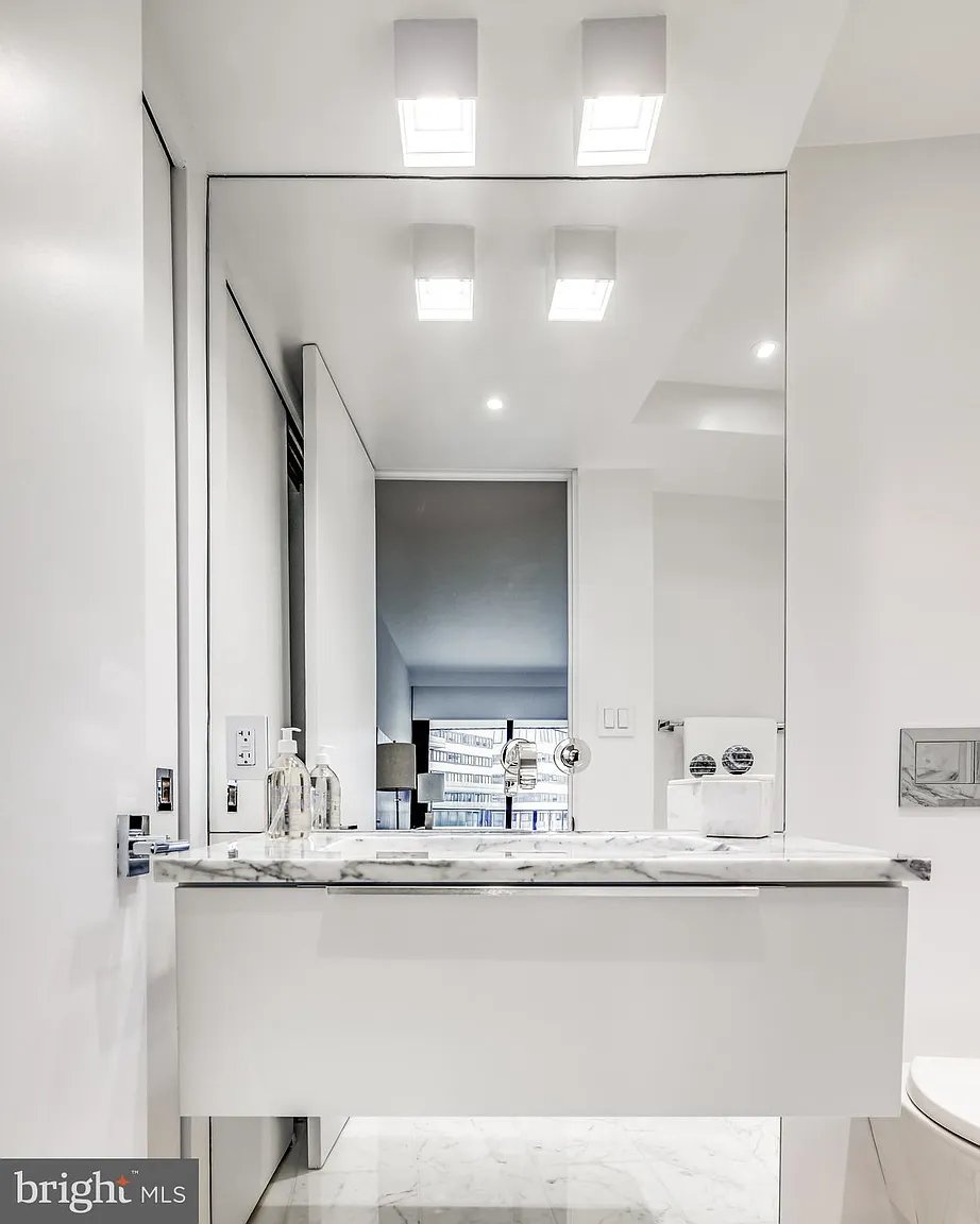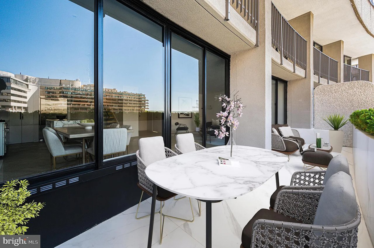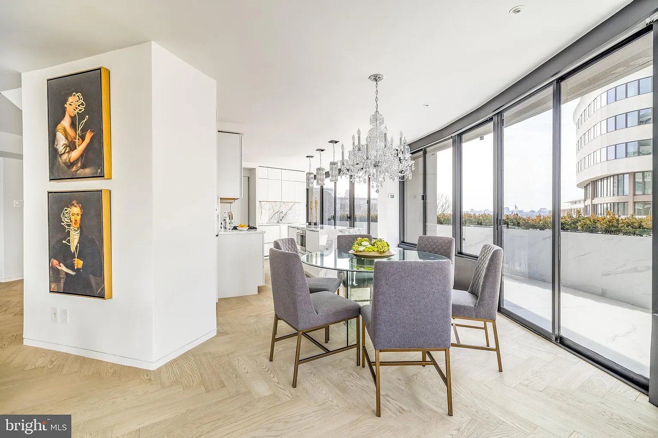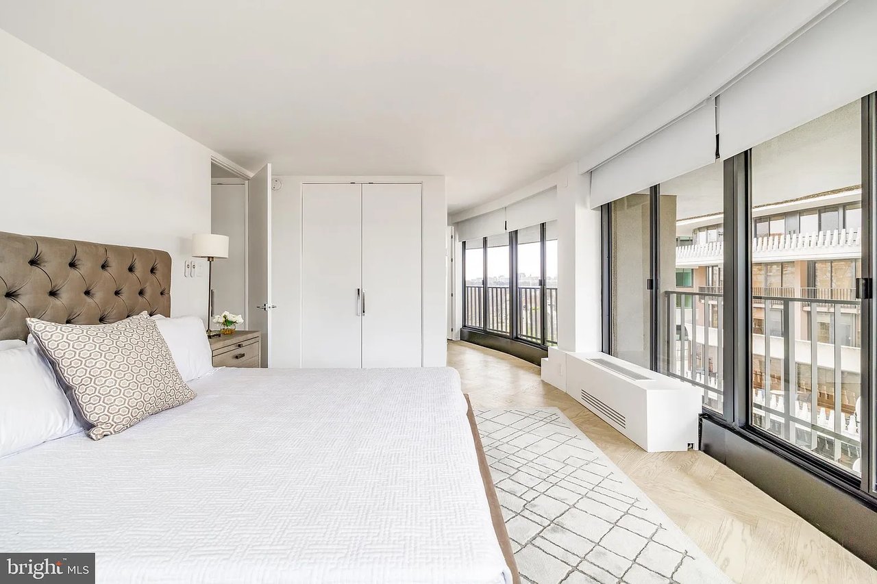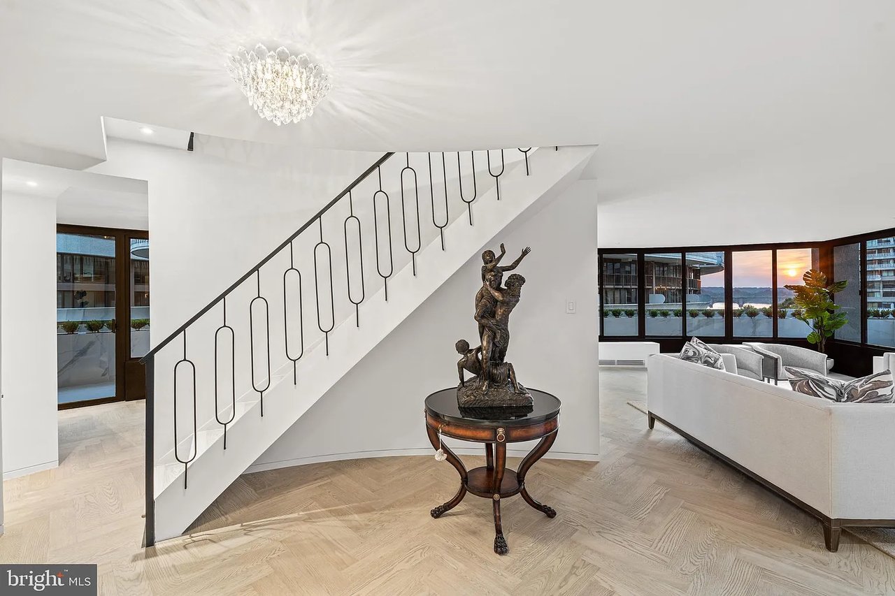 Unit #714 features a Juliet balcony and Watergate's iconic wraparound terrace, unveiling breathtaking panoramic views of the Kennedy Center, Memorial Bridge, and Key Bridge, all set against the serene backdrop of the Potomac River. Inside, refined simplicity meets architectural brilliance, with a design curated to the highest global standards. Wide-plank hardwood floors and a light, airy palette shimmer as natural light floods through floor-to-ceiling windows, casting an ethereal glow throughout.