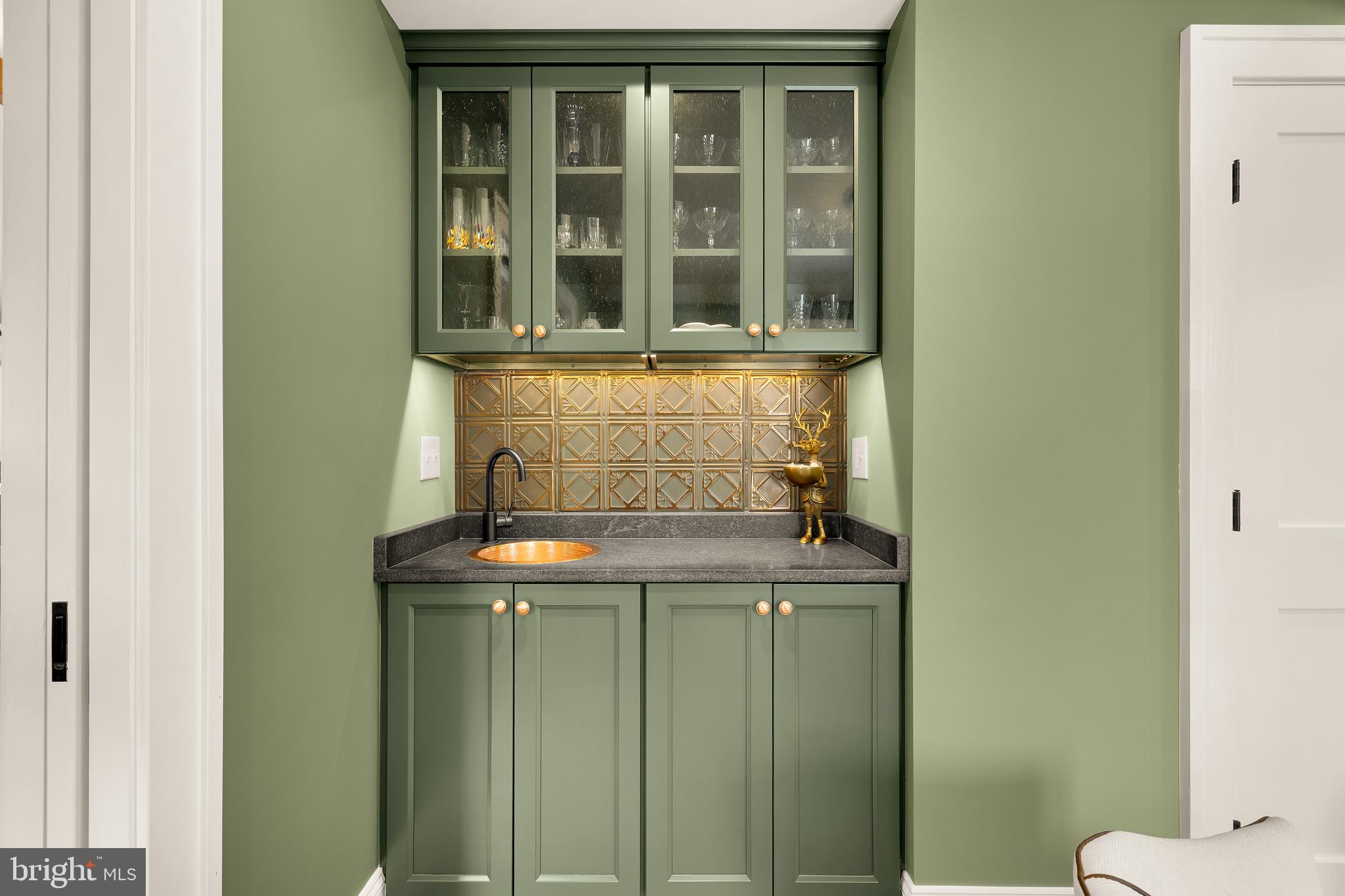 The kitchen pairs modern functionality with timeless materials. Quartz countertops anchor the island, while granite counters and backsplash line the perimeter. Merillat cabinetry with dovetail construction and soft-close drawers provides an elevated, ample storage solution, complemented by a GE Profile Monogram appliance suite including a dedicated wine refrigerator. A 36-inch dual-fuel professional range -- featuring a gas cooktop paired with an electric oven -- offers the best of both worlds and is especially favored by chefs for its precision and consistency.