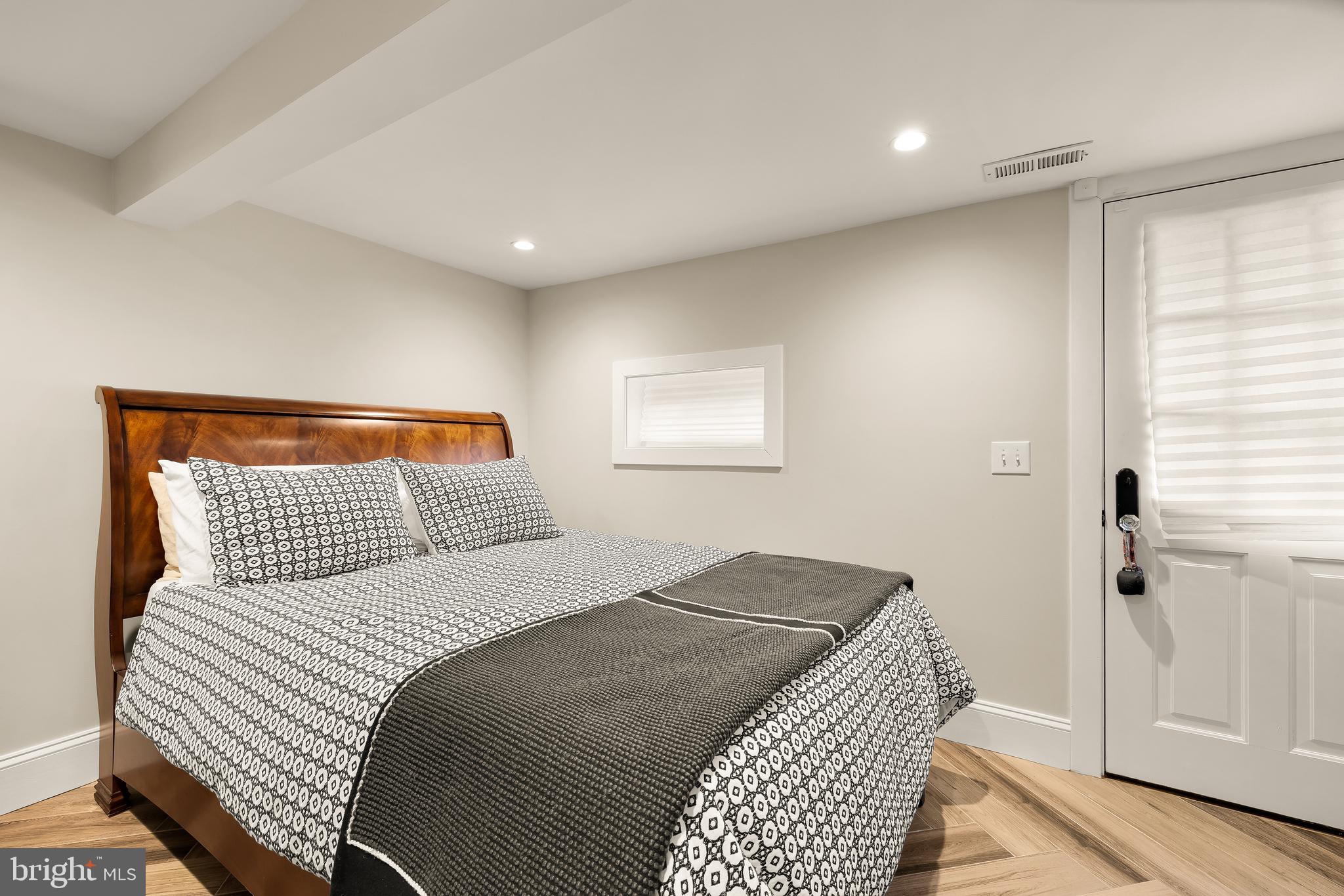 Accommodations comprise three bedrooms with ClosetZone storage systems. The primary bath evokes an old-world charm with its vintage tilework while introducing modern comforts by way of Brizo fixtures and radiant heated floors. The lower level bathroom features the same amenities and showcases Restoration Hardware and Delta fixtures, as well as a distinctive Thaine black and copper pedestal bathtub.