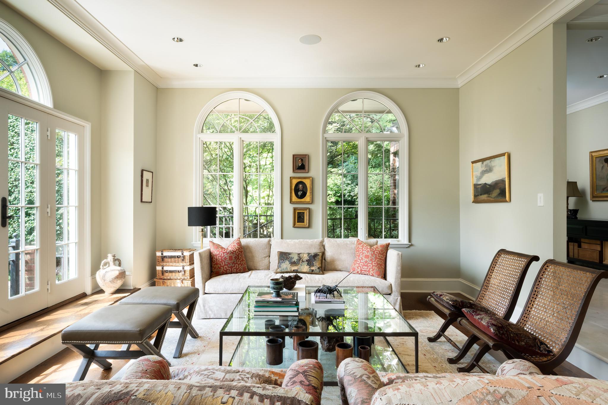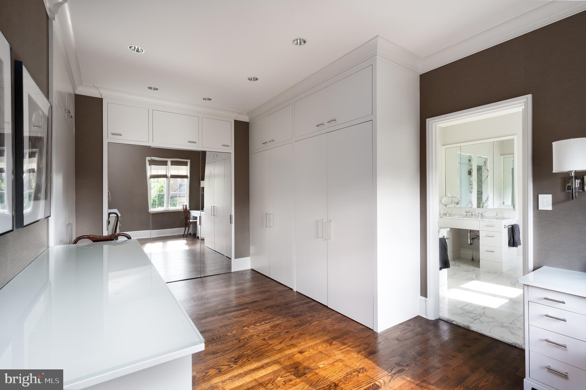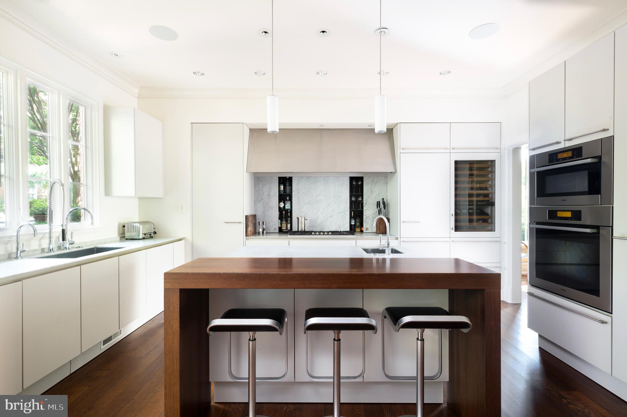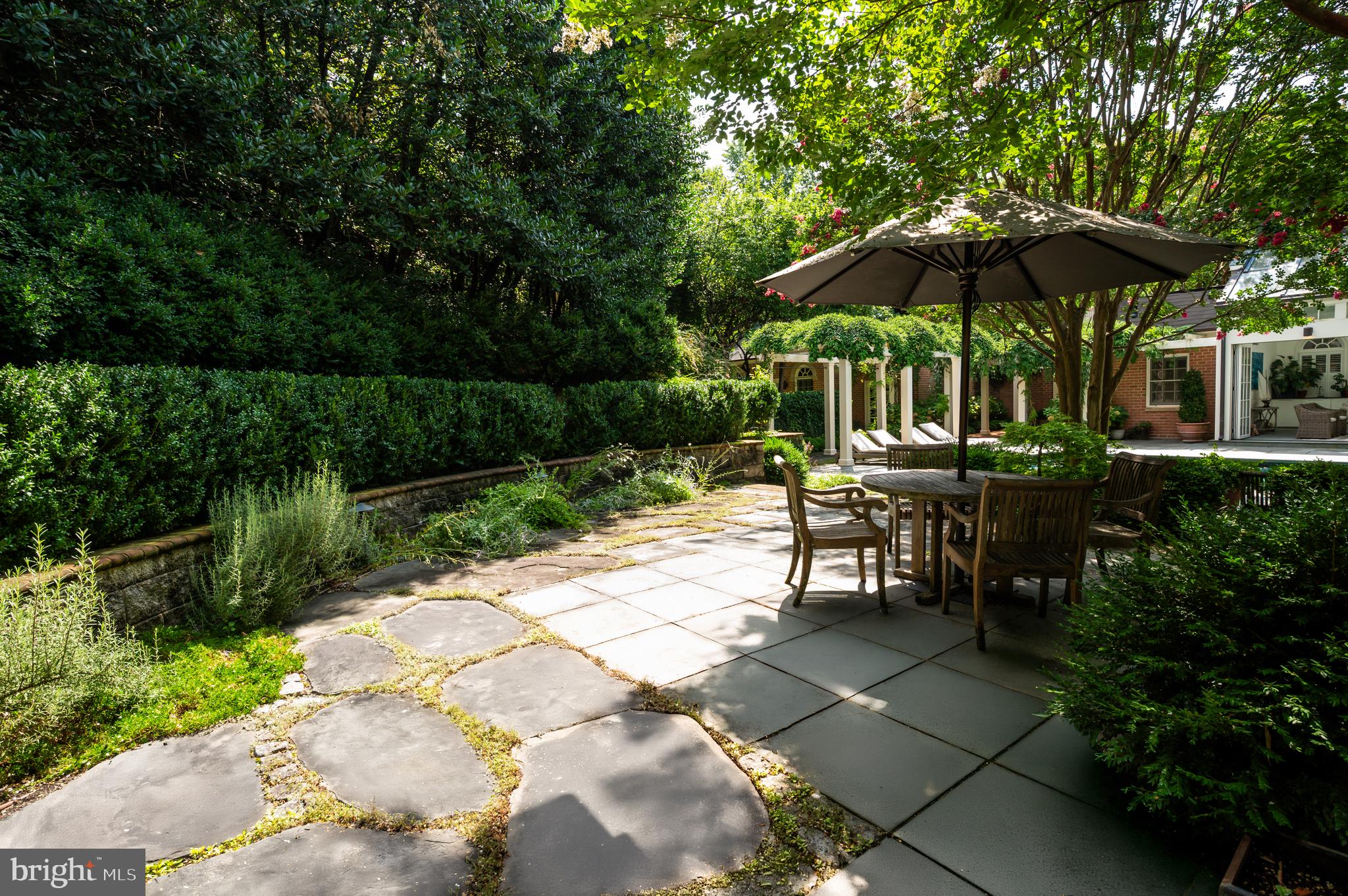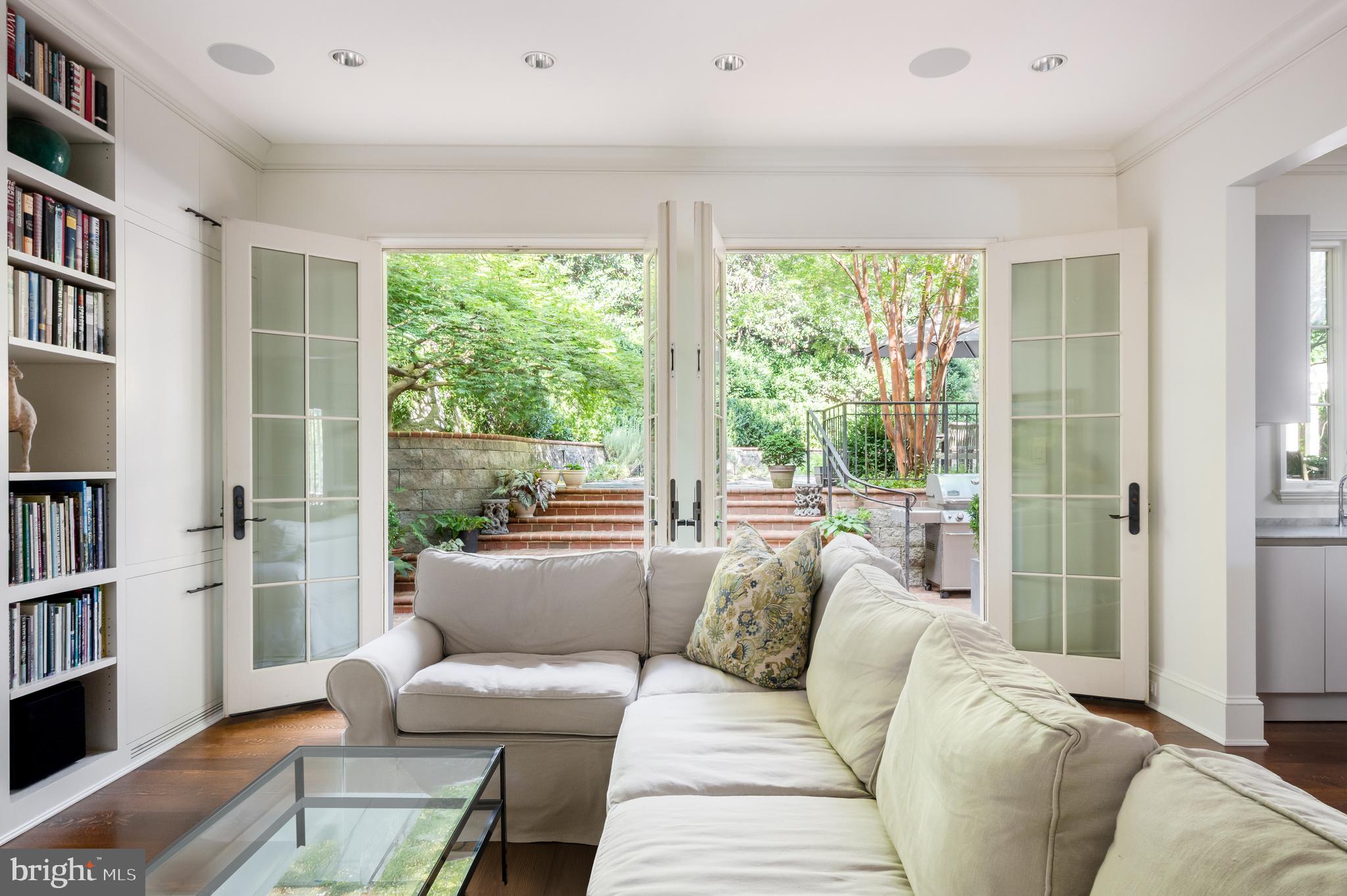 Synonymous with quiet luxury and understated elegance, Kemble Place is one of Washington's most sought-after enclaves. Nestled within this exclusive community, 4814 Kemble Place occupies a rare double lot, (encompassing both 4814 and 4816 Kemble Place) creating an outdoor oasis that includes a pool, pool house and separate studio/guest house and office. The residence is an update on classic architecture, blending timeless principles with modern livability. Its facade nods to the grand estates of the past while incorporating contemporary elements, creating an unmistakable presence. A dramatic, offset entry introduces the home through a transverse limestone gallery, where a formal powder room and coat closet are discreetly tucked away. Natural light pours into the living spaces through elegant casement windows, highlighting substantial millwork and thoughtful architectural detailing. The sweeping custom designed staircase, floating above a dramatic picture window, aligns beautifully with the formal living room. Anchored by an English limestone fireplace and framed by a balcony overlooking the streetscape, it exudes both scale and refinement. Adjacent, the stately dining room flows into a bay-windowed breakfast room with built-in cabinetry, connecting to the kitchen. At the heart of the expansive grounds behind the main residence is a 40' X 20' pool with integrated spa, finished in bluestone and equipped with an automatic cover. The adjacent pool house opens via NanaWall to an al fresco lounge and long wet bar and features a full bath, garden shed and work room. A separate guest house with kitchenette and full bath separated from the pool house by double pergola covered terraces complete the private retreat--one that belies the home's close-in location. Minutes from Georgetown, Downtown, and major commuter routes, 4814 Kemble Place stands as an exemplary residence at the pinnacle of Washington living.