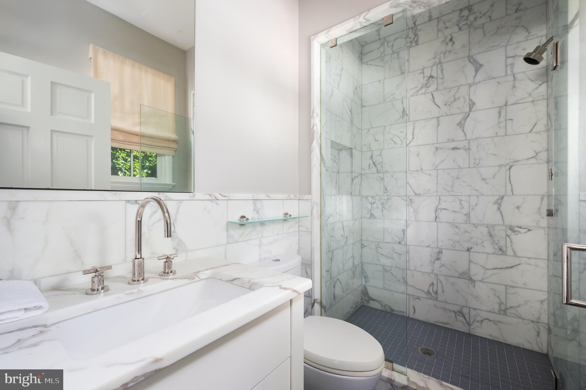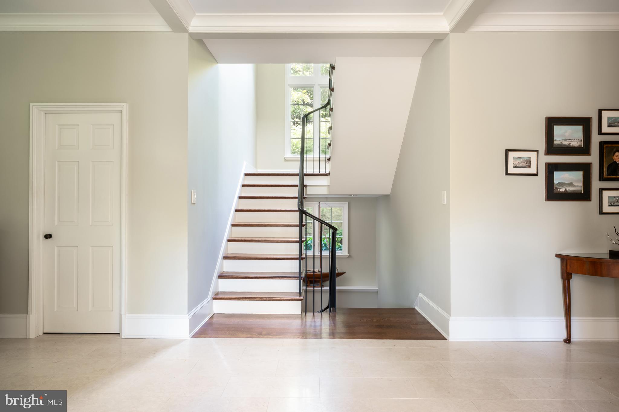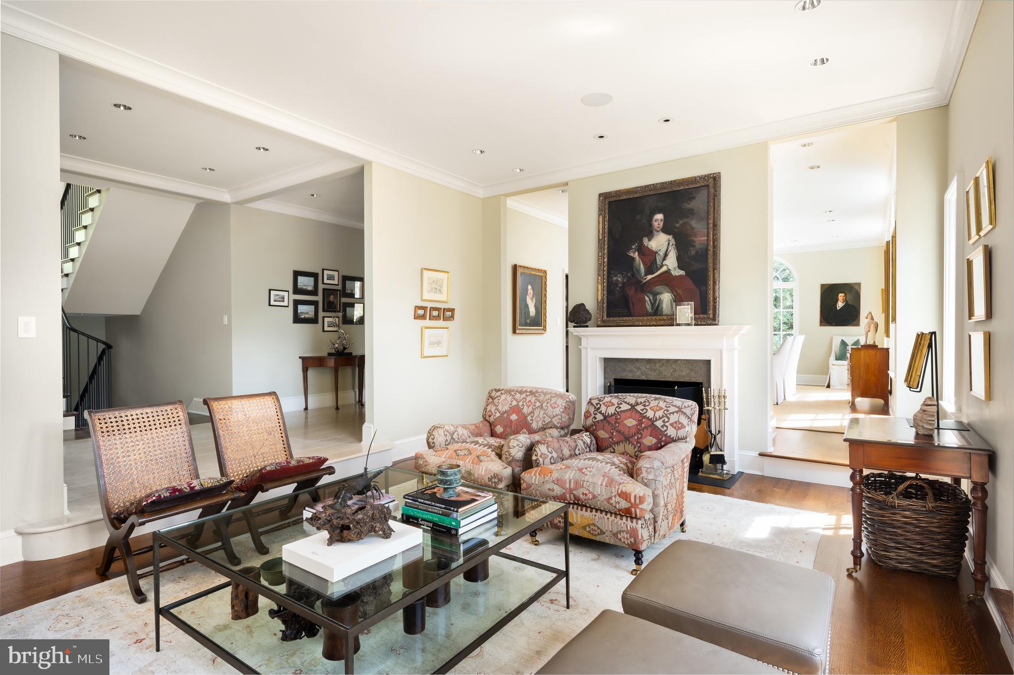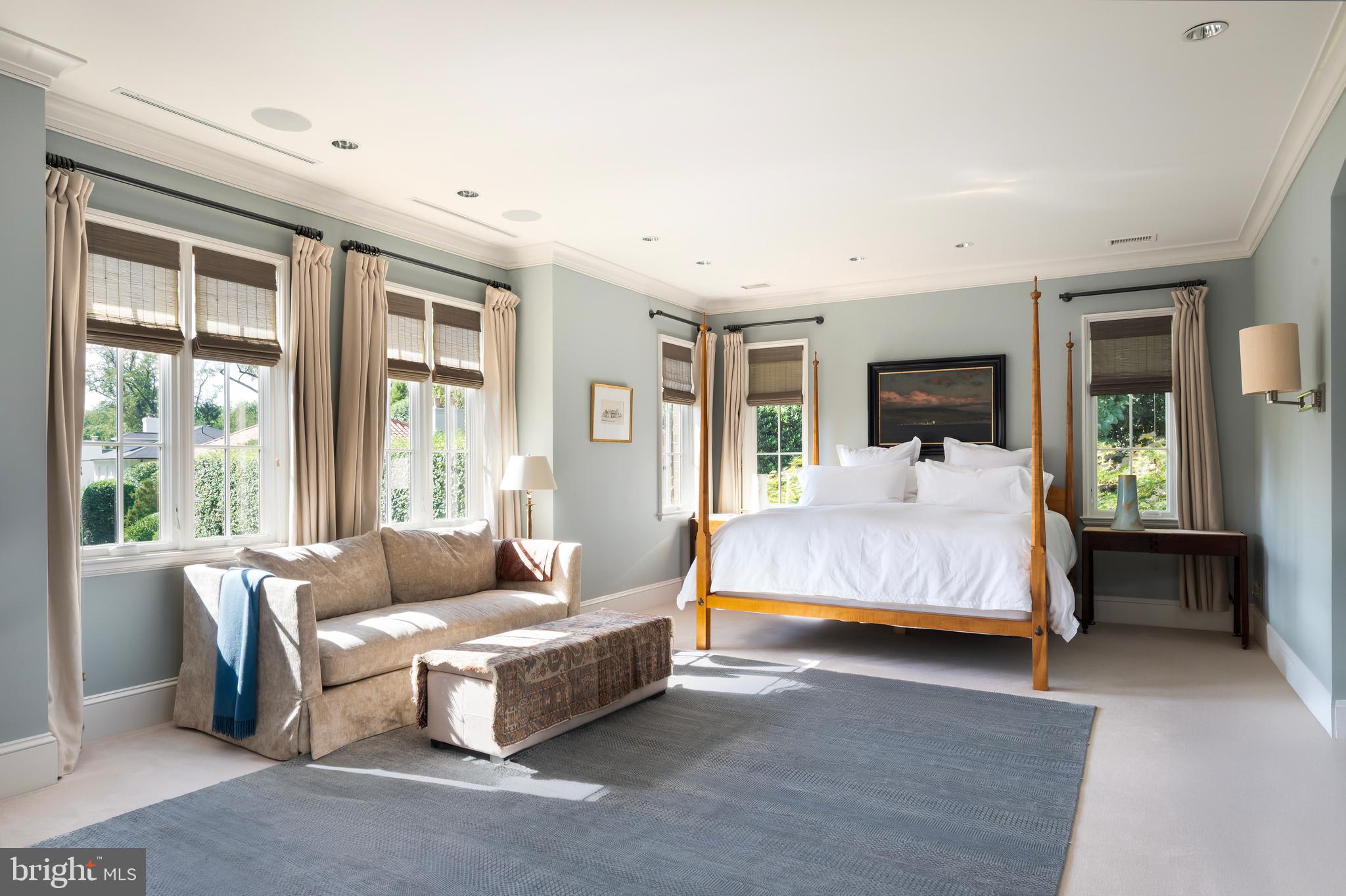 Synonymous with quiet luxury and understated elegance, Kemble Place is one of Washington's most sought-after enclaves. Nestled within this exclusive community, 4814 Kemble Place occupies a rare double lot, (encompassing both 4814 and 4816 Kemble Place) creating an outdoor oasis that includes a pool, pool house and separate studio/guest house and office. The residence is an update on classic architecture, blending timeless principles with modern livability. Its facade nods to the grand estates of the past while incorporating contemporary elements, creating an unmistakable presence. A dramatic, offset entry introduces the home through a transverse limestone gallery, where a formal powder room and coat closet are discreetly tucked away. Natural light pours into the living spaces through elegant casement windows, highlighting substantial millwork and thoughtful architectural detailing. The sweeping custom designed staircase, floating above a dramatic picture window, aligns beautifully with the formal living room. Anchored by an English limestone fireplace and framed by a balcony overlooking the streetscape, it exudes both scale and refinement. Adjacent, the stately dining room flows into a bay-windowed breakfast room with built-in cabinetry, connecting to the kitchen. At the heart of the expansive grounds behind the main residence is a 40' X 20' pool with integrated spa, finished in bluestone and equipped with an automatic cover. The adjacent pool house opens via NanaWall to an al fresco lounge and long wet bar and features a full bath, garden shed and work room. A separate guest house with kitchenette and full bath separated from the pool house by double pergola covered terraces complete the private retreat--one that belies the home's close-in location. Minutes from Georgetown, Downtown, and major commuter routes, 4814 Kemble Place stands as an exemplary residence at the pinnacle of Washington living.