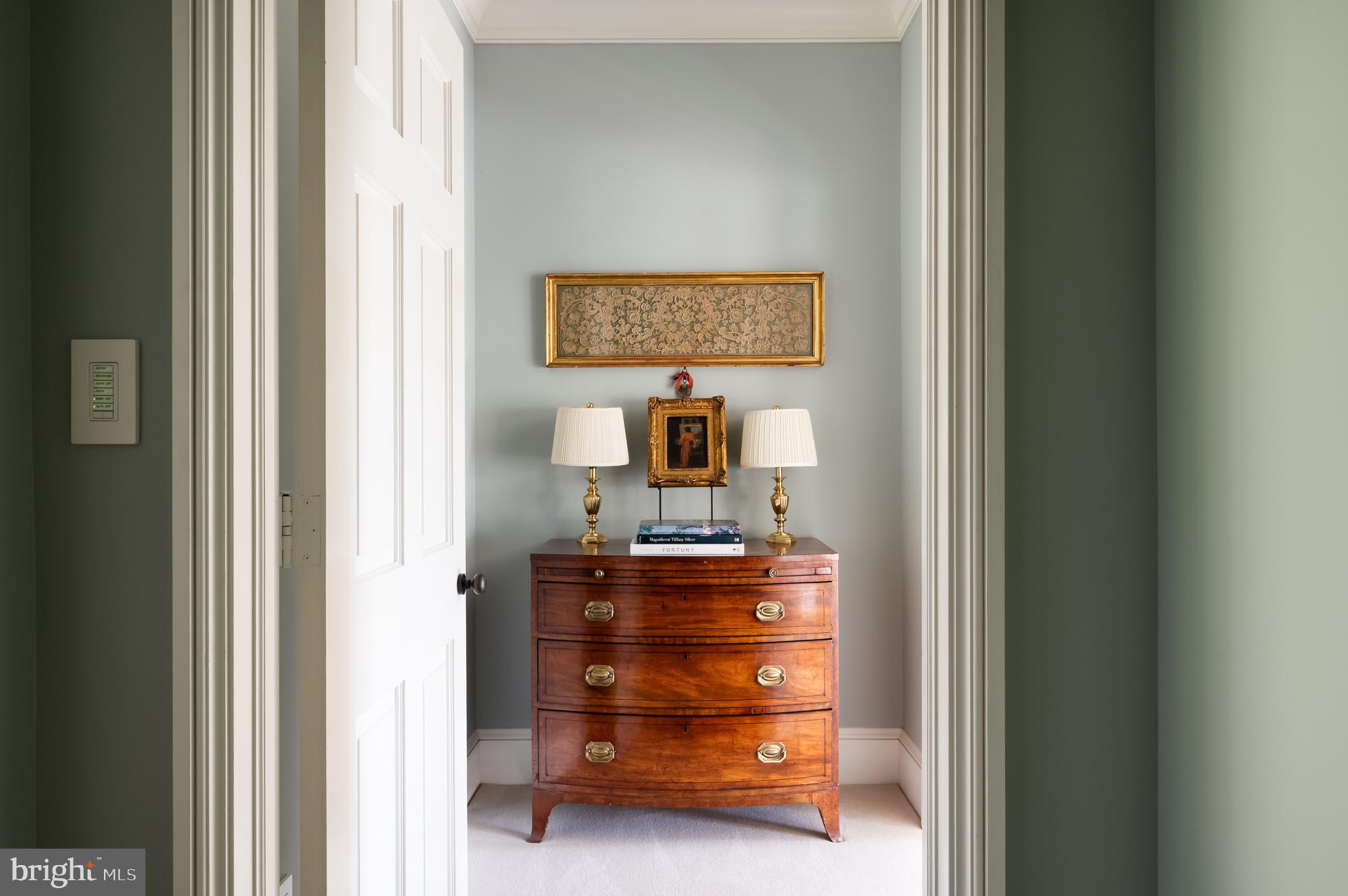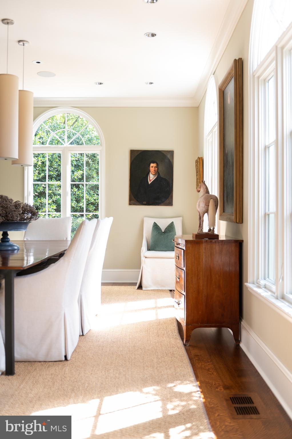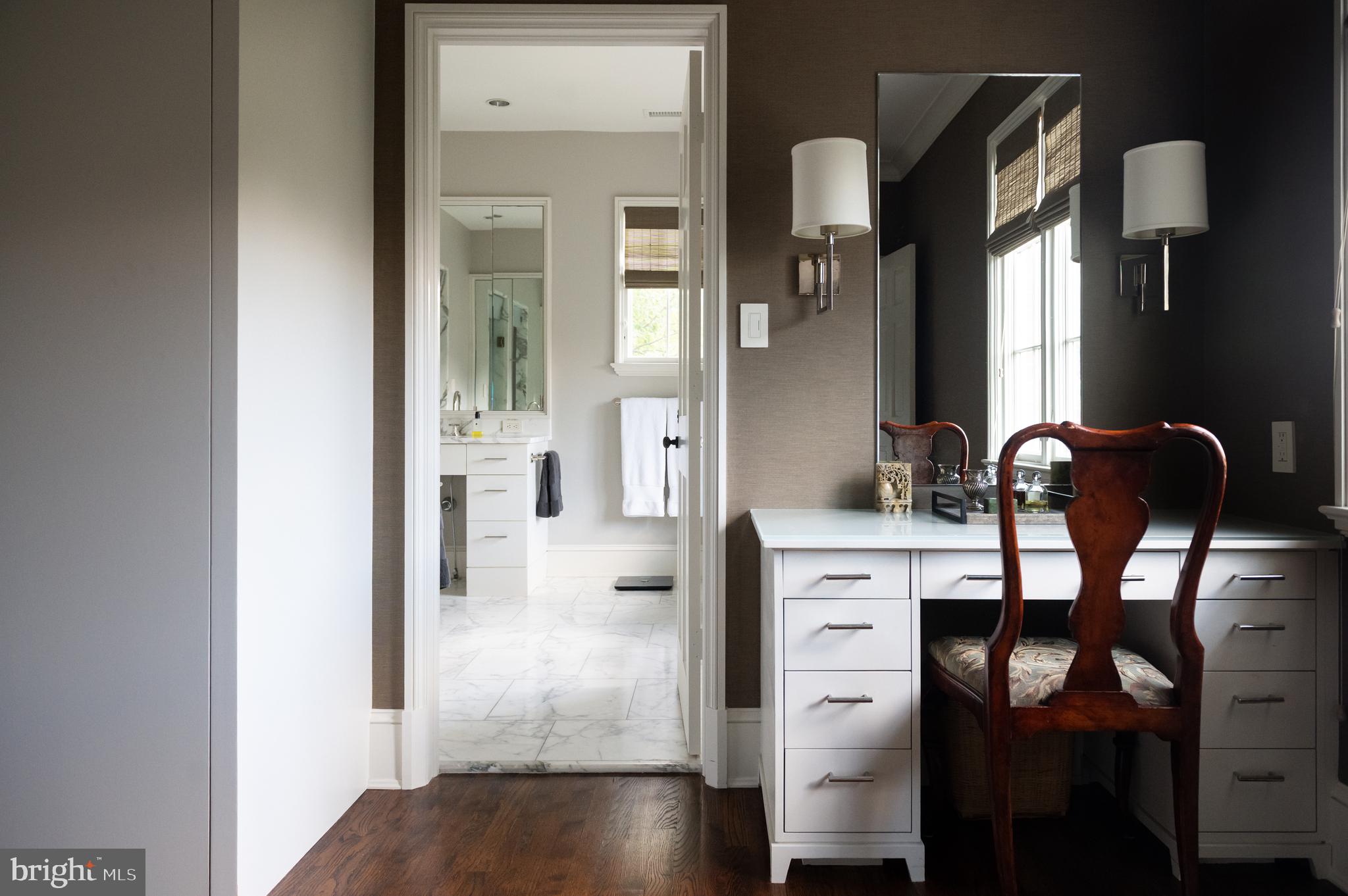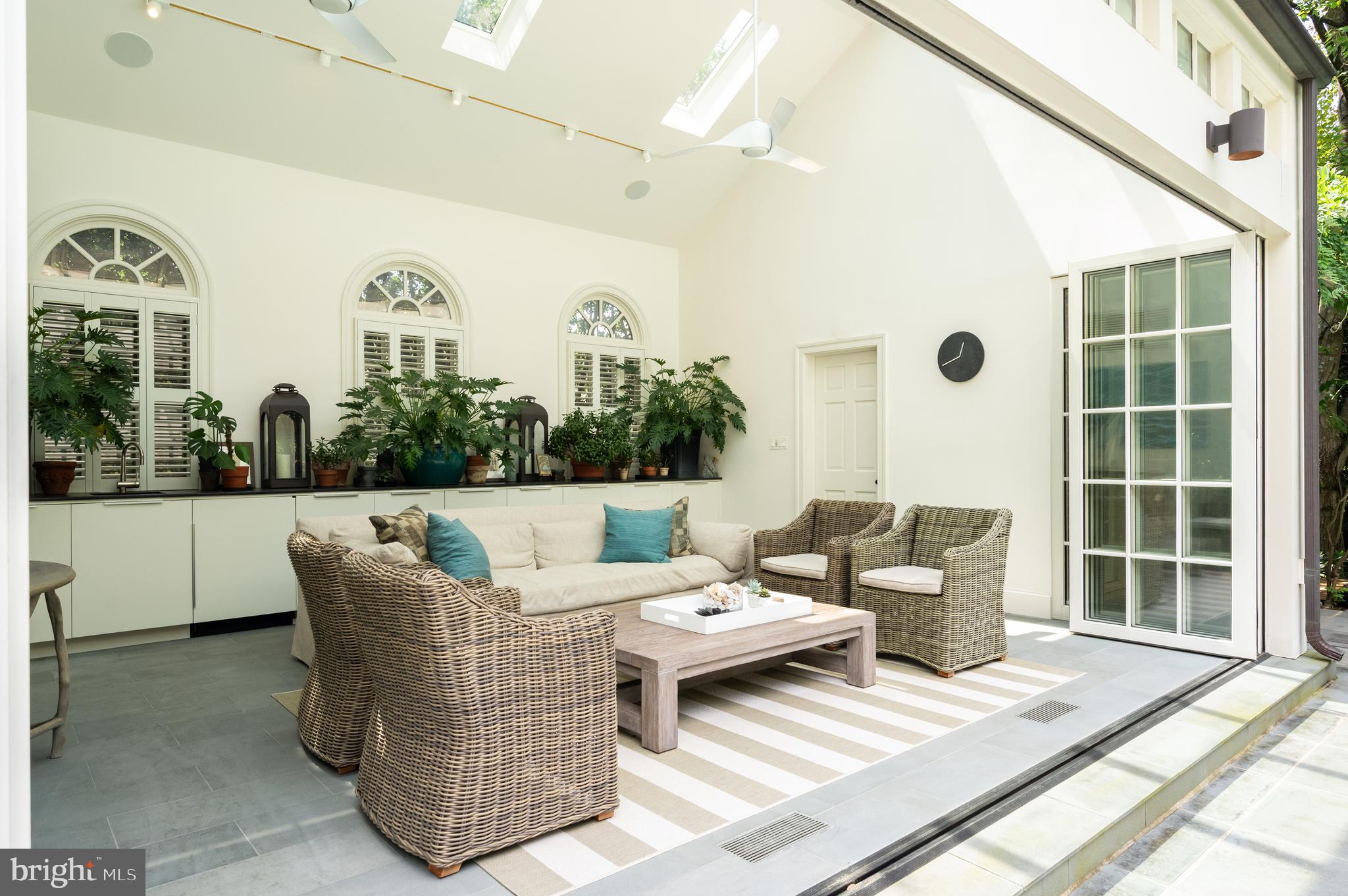 Synonymous with quiet luxury and understated elegance, Kemble Place is one of Washington's most sought-after enclaves. Nestled within this exclusive community, 4814 Kemble Place occupies a rare double lot, (encompassing both 4814 and 4816 Kemble Place) creating an outdoor oasis that includes a pool, pool house and separate studio/guest house and office. The residence is an update on classic architecture, blending timeless principles with modern livability. Its facade nods to the grand estates of the past while incorporating contemporary elements, creating an unmistakable presence. A dramatic, offset entry introduces the home through a transverse limestone gallery, where a formal powder room and coat closet are discreetly tucked away. Natural light pours into the living spaces through elegant casement windows, highlighting substantial millwork and thoughtful architectural detailing. The sweeping custom designed staircase, floating above a dramatic picture window, aligns beautifully with the formal living room. Anchored by an English limestone fireplace and framed by a balcony overlooking the streetscape, it exudes both scale and refinement. Adjacent, the stately dining room flows into a bay-windowed breakfast room with built-in cabinetry, connecting to the kitchen. At the heart of the expansive grounds behind the main residence is a 40' X 20' pool with integrated spa, finished in bluestone and equipped with an automatic cover. The adjacent pool house opens via NanaWall to an al fresco lounge and long wet bar and features a full bath, garden shed and work room. A separate guest house with kitchenette and full bath separated from the pool house by double pergola covered terraces complete the private retreat--one that belies the home's close-in location. Minutes from Georgetown, Downtown, and major commuter routes, 4814 Kemble Place stands as an exemplary residence at the pinnacle of Washington living.