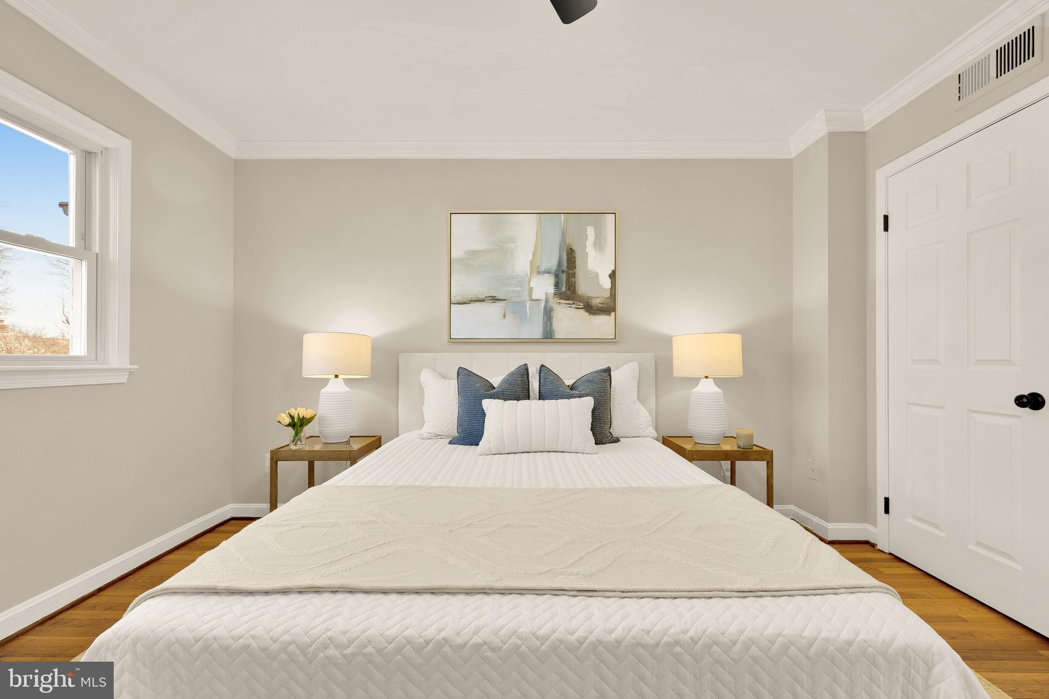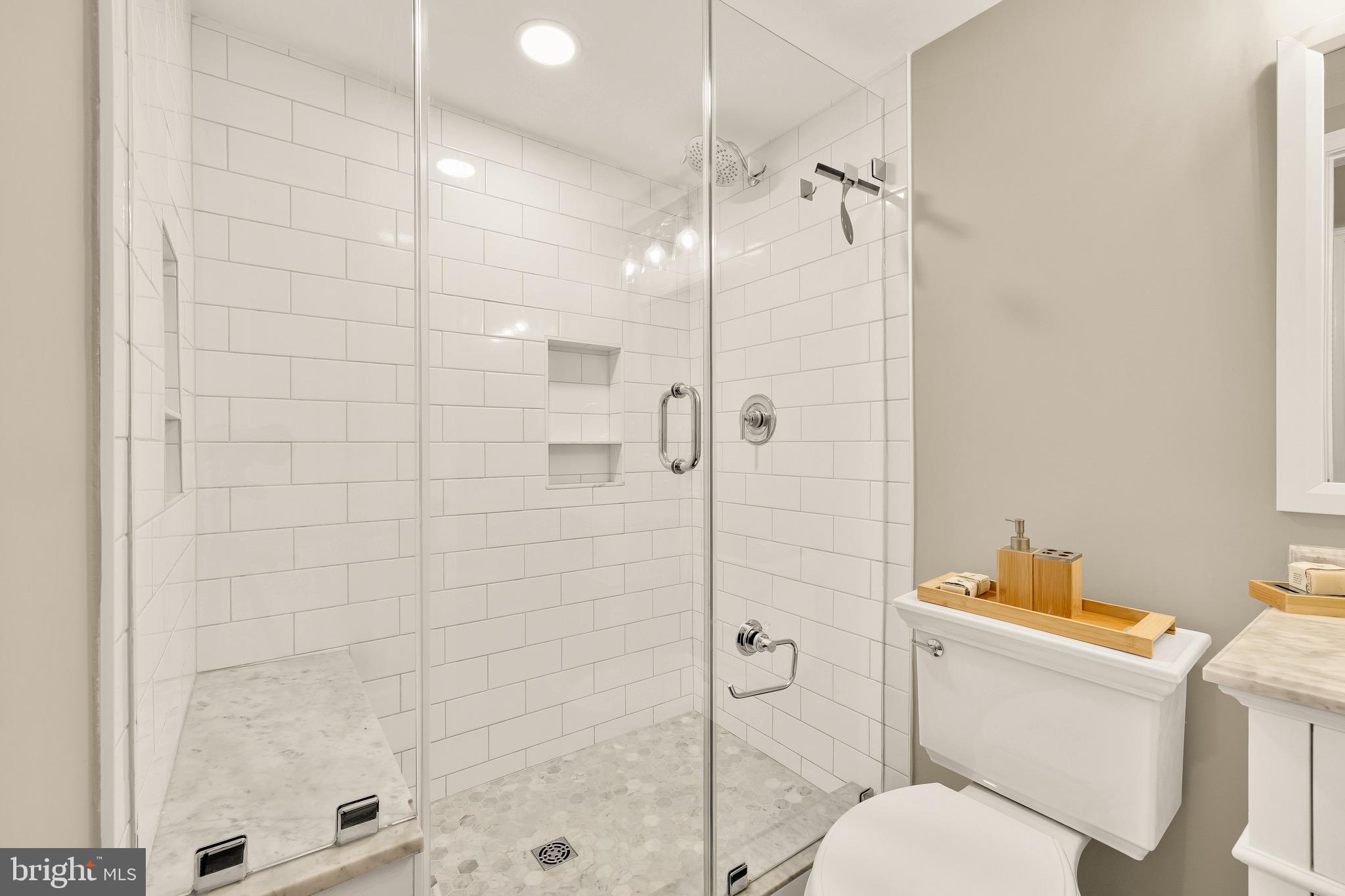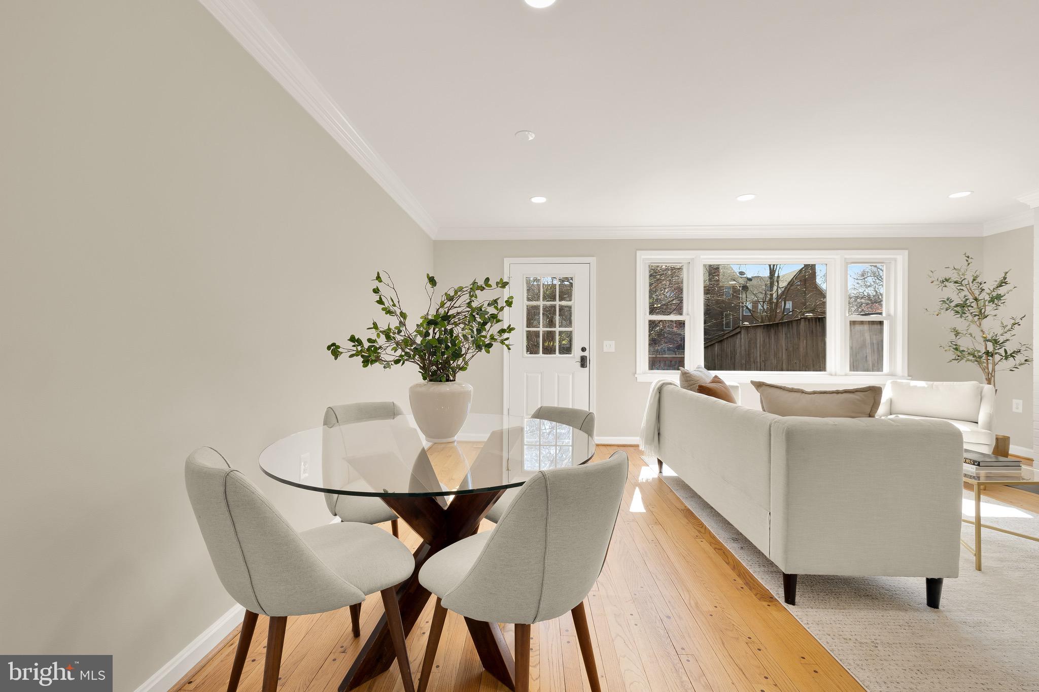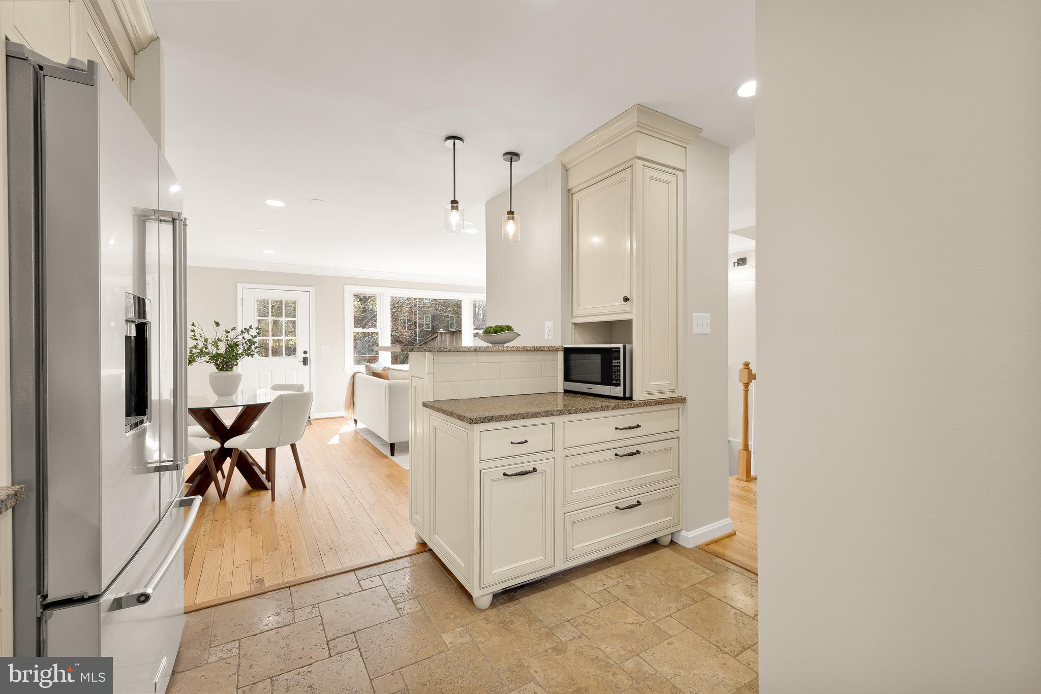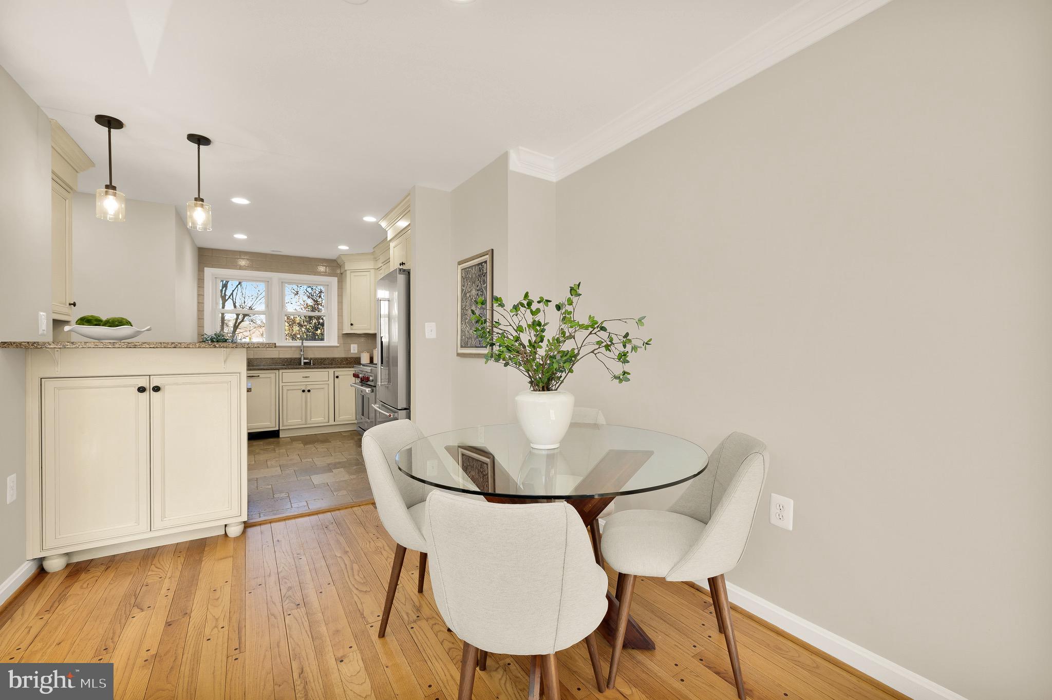 Tucked within a quiet enclave equidistant from Seven Corners and Bailey's Crossroads is 6068 Hardwick Place, a charming brick townhome whose improvements, upgrades, and amenities belie its humble initial impression. Approached by a flagstone walkway, the front door opens into a classic foyer framed by the main staircase. Fresh paint, refinished hardwood floors, and new fixtures throughout have created a pristine environment of quality materials and expert workmanship. At the core of the main level is the kitchen, a space curated for the true culinary enthusiast. Custom inset Crystal cabinets complement granite countertops and conceal professional-grade appliances, except for the stunning Wolf range, undoubtedly the centerpiece of the space. Travertine floors laid out in a Versailles pattern, clever storage, an intricate backsplash, and bar seating complete the space. A fully open concept living and dining area spans the width of the home. Generously proportioned, it features direct access to the rear deck and a large brick fireplace wall. Three bedrooms are found on the upper level. The primary bedroom features a luxurious travertine ensuite bath with a granite vanity and walk-in glass shower, while the two additional bedrooms share a hall bath. The 2 full bathrooms on the upper level and the powder room on the main level feature radiant heated floors. Additional living space is provided via the ample lower level recreation room, showcasing a fireplace wall flanked by built-ins. A large rear deck creates the perfect setting for relaxed al fresco entertaining. A further garden area extends off of the deck, backing onto open community green space - a truly coveted amenity for townhome living. Owned solar panels installed on the rear roof enhance the home's energy efficiency while remaining discreetly out of view from the front elevation. Conveniently located and purposefully improved to meet contemporary lifestyle demands, 6068 Hardwick Place is a rare gem.