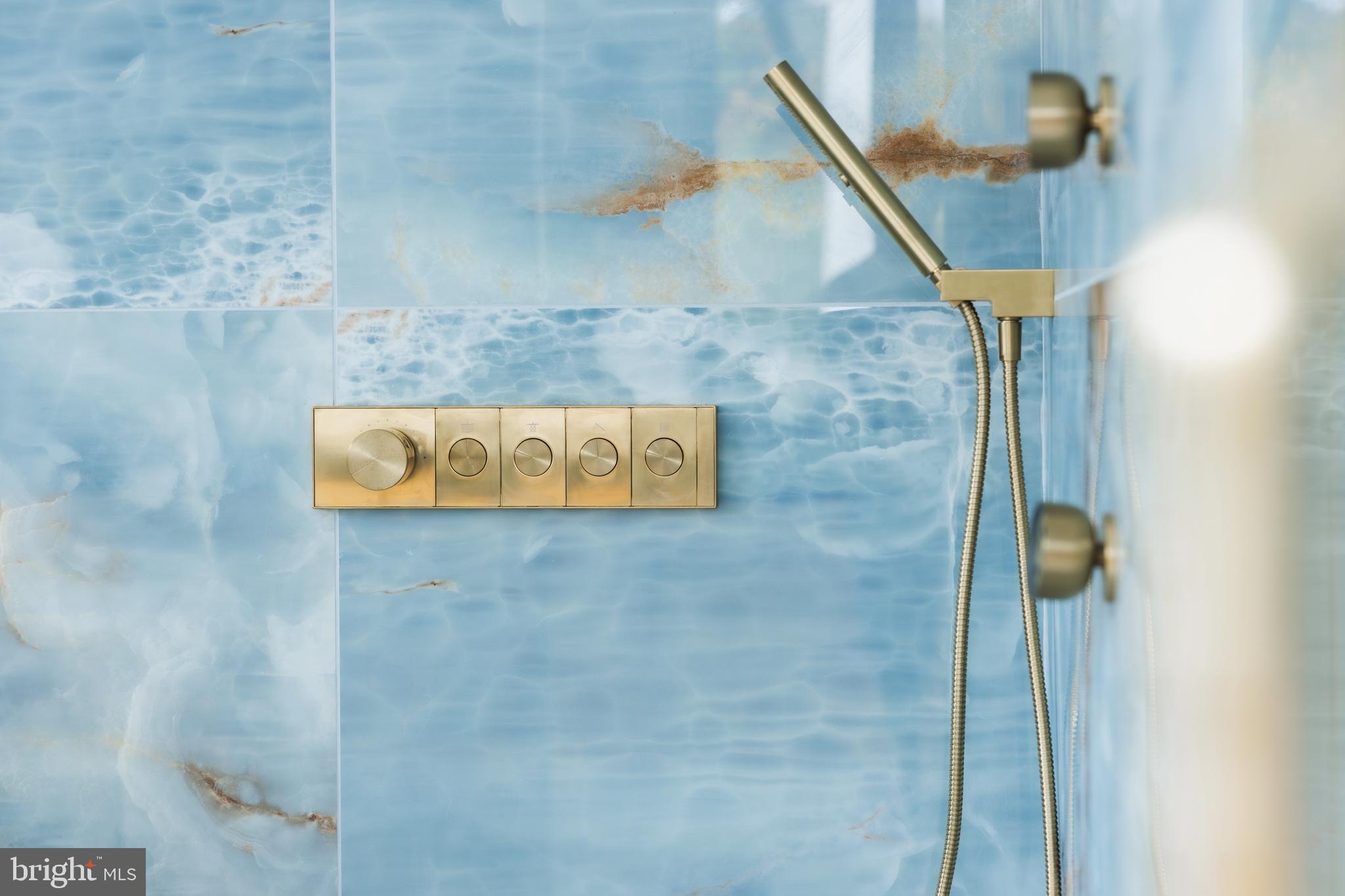 All seven full bathrooms and two half bathrooms are fully tiled on every wall, combining durability with refined design. Three additional bedrooms, each with an ensuite bath and custom-built walk-in closets featuring custom millwork, surround the loft sitting area, while a laundry room adds convenience to the upper level.