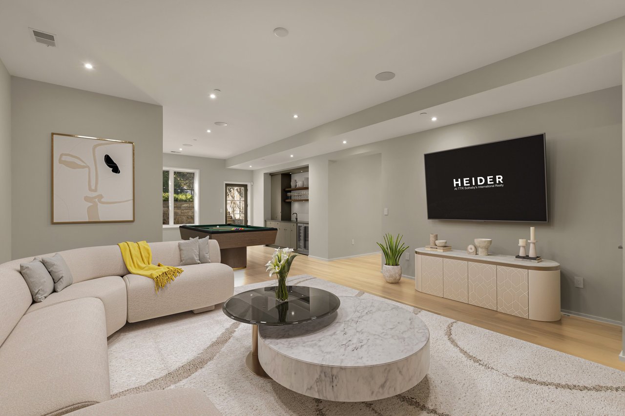 Nestled in the heart Bethesda's prestigious Burning Tree community, 7027 Longwood Drive is a new modernist masterpiece sitting at the apex of cutting edge design and expert workmanship. The brainchild of architect John Katinas and renowned developer Paul Katinas, two names synonymous with unparalleled luxury residential projects, the home evokes cues of the great mountain estates in Aspen. Its initial approach is via a deep tree-lined driveway, culminating in a dramatic paver motor court. The residence's architectural excellence is immediately apparent, with an artful combination of stone, wood, and glass. The front door enters into the ethereal central section of the home, flooded with natural light from floor-to-ceiling glass all around. A stunning floating staircase is immediately adjacent, situated within its dedicated double-height void. Straight ahead is the formal dining room, banquet sized and opening onto a private terrace to blur the lines between indoor and al fresco dining while simultaneously creating an effortless flow when entertaining. The formal living room, anchored by a striking fireplace wall, cozy adjoining study, and main powder room are thoughtfully grouped together on one end of the floor plan, thereby creating distinction between formal and informal areas. The latter comprises a substantial, fully open concept area. Its centerpiece is the chef's kitchen, showcasing two-tone sleek European style cabinetry discreetly concealing a comprehensive suite of commercial grade Miele appliances. It faces the large family room area, whose fireplace wall infuses a cozy ambiance despite the scale of the space. Two sets of French doors open onto the private screened porch, featuring its own wood burning fireplace, enabling all-seasons indoor/outdoor living. A mudroom area with direct access to the attached two-car garage completes the main level. The lavish upper level primary suite's soaring vaulted ceilings are bifurcated by substantial wooden beams. Its open dressing room is arranged akin to a luxury boutique and revolves around a large center island. Likewise, the sumptuous primary bath appears to be inspired by some of the world's leading resort spas, showcasing a shiplap ceiling and the expected five-piece luxury accoutrements, including a walk-in steam shower. The three additional upper level bedrooms are each generously proportioned and equipped with amenities such as vaulted ceilings, walk-in closets, and ensuite baths. A well-equipped and conveniently located laundry room completes the upper level. The walk-up lower level is anchored at one end by a large recreation room featuring a wet bar and lined with wide plank white oak flooring. An additional space on the opposite end of the lower level can be utilized as a dedicated game or billiards room and sits adjacent to a full bedroom suite. A spa or fitness room adjoins a professional spa-grade bath, complete with floating vanity and a curbless walk-in shower bathed in concealed mood lighting. Throughout the home, state-of-the-art systems, including a sophisticated Lutron lighting suite and integrated surround sound throughout, create a connected lifestyle in line with modern consumer expectations. Out back, the patios and terraces all lead onto a generous 0.53-acre lot, representing one of the most level, private, and usable in this coveted neighborhood. Proximate to downtown Bethesda, award-winning schools, and country clubs while maintaining a level of complete tranquility, the location is second to none. Blending masterful craftsmanship and design with an unparalleled setting in one of the Capital Region's most sought-after neighborhoods, 7027 Longwood Drive is a canvas for the most discerning buyer.
