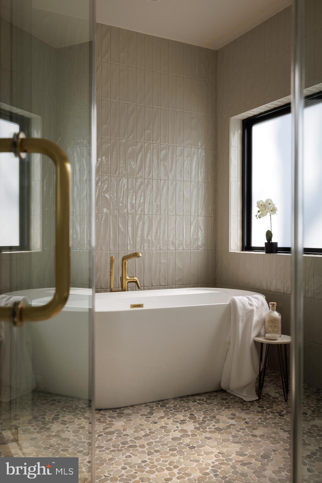 Designed for entertaining, the walkout lower level is an amenity-rich space. A designer wet bar anchors the entertaining area, backed by a dramatic arched recess with floating shelving. A professional media room, fitness room, and full bedroom suite complete the level.
