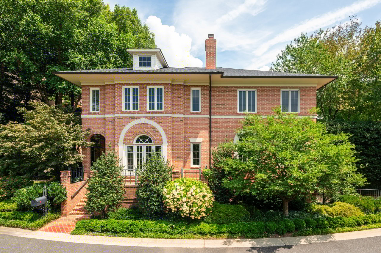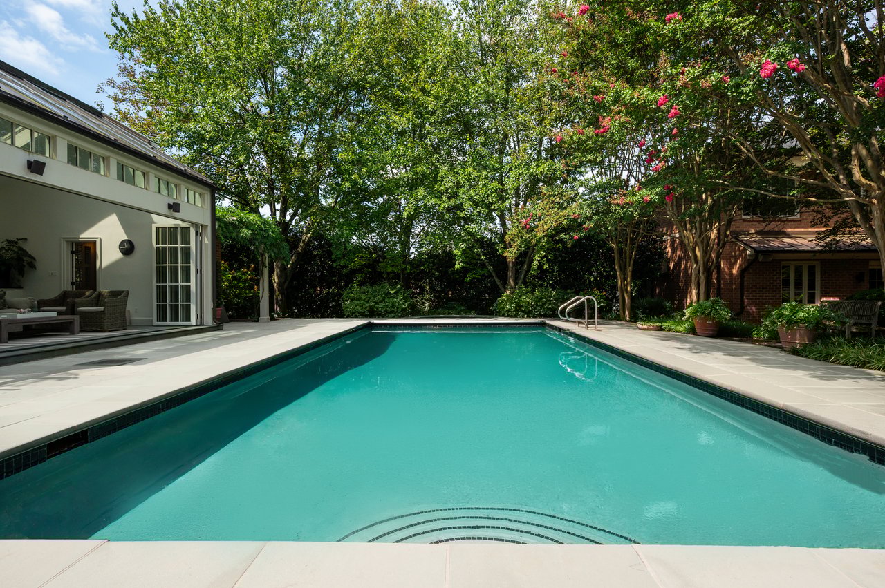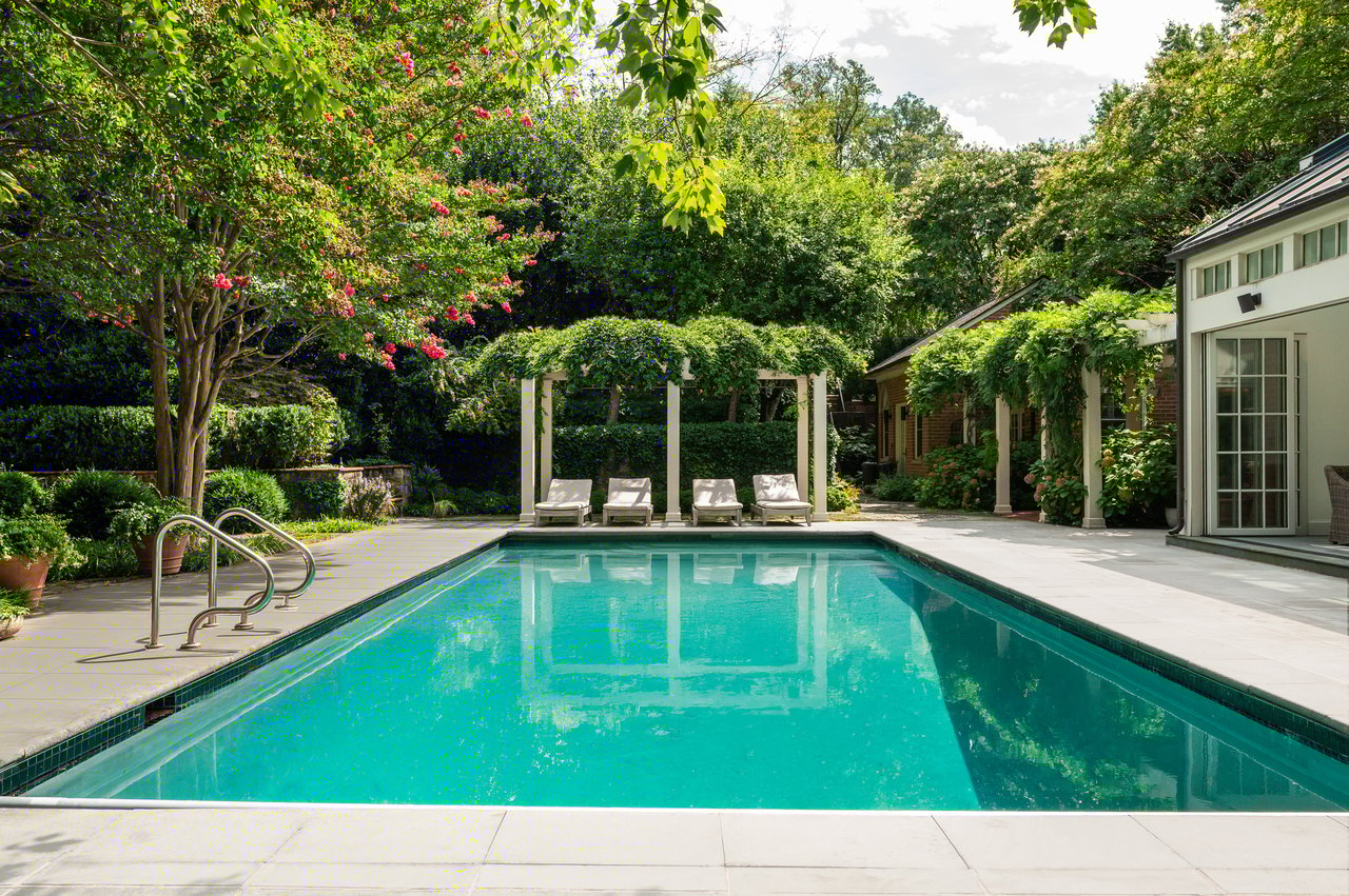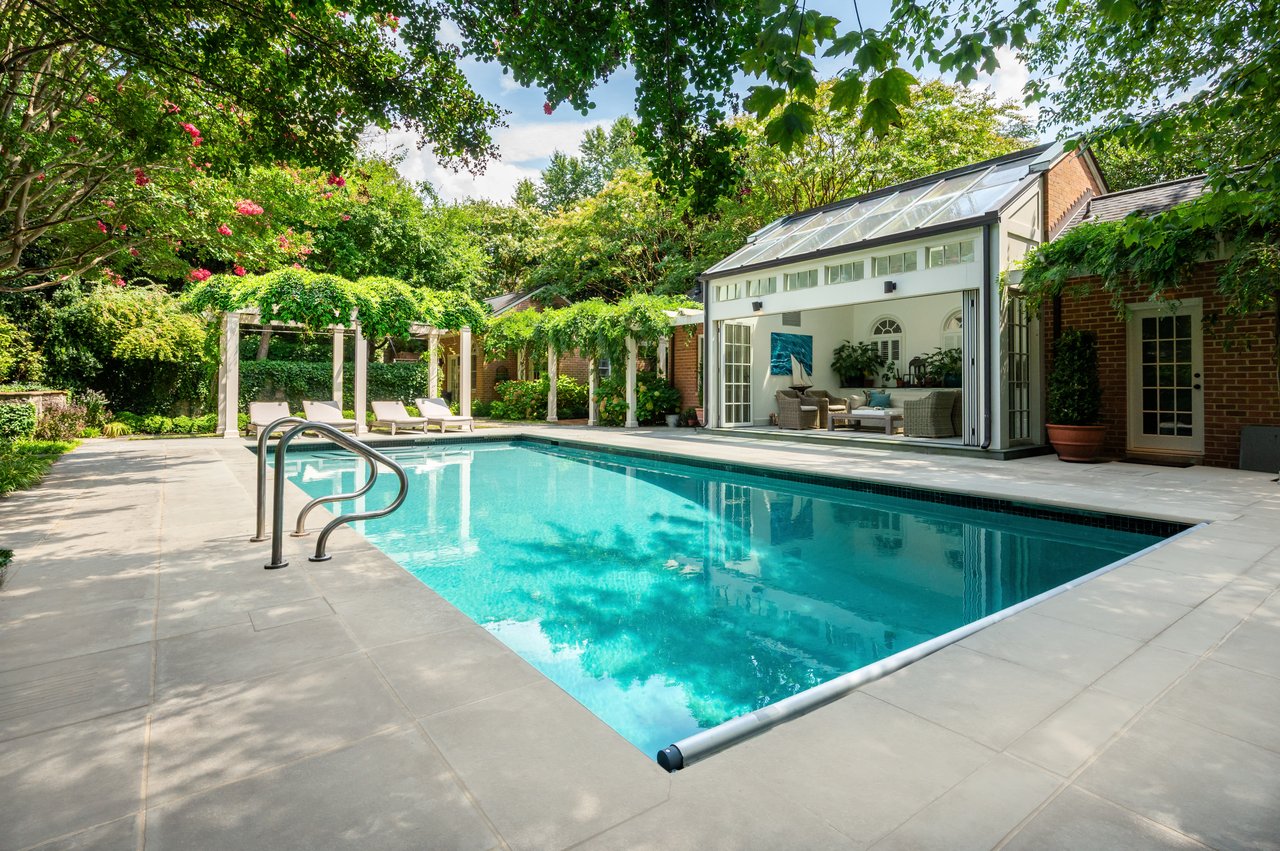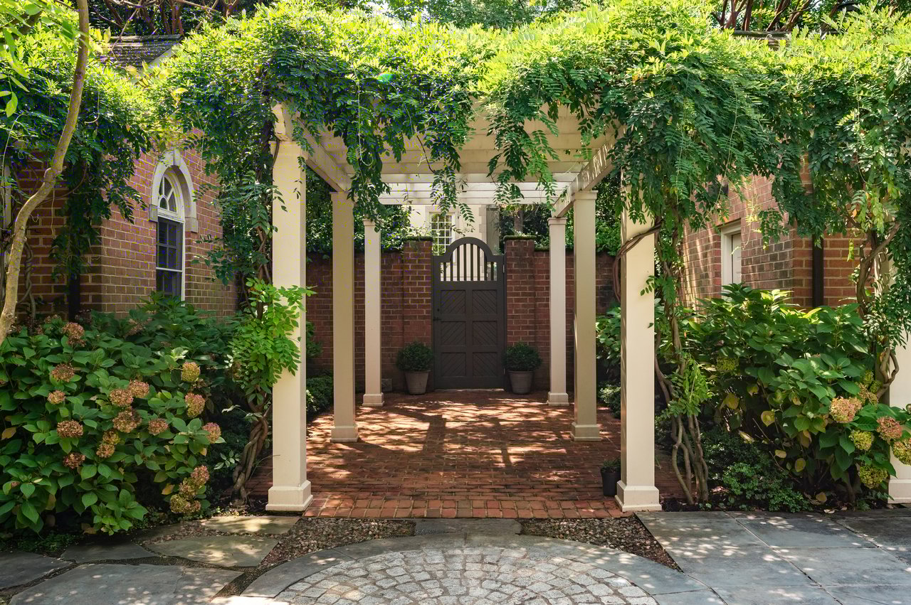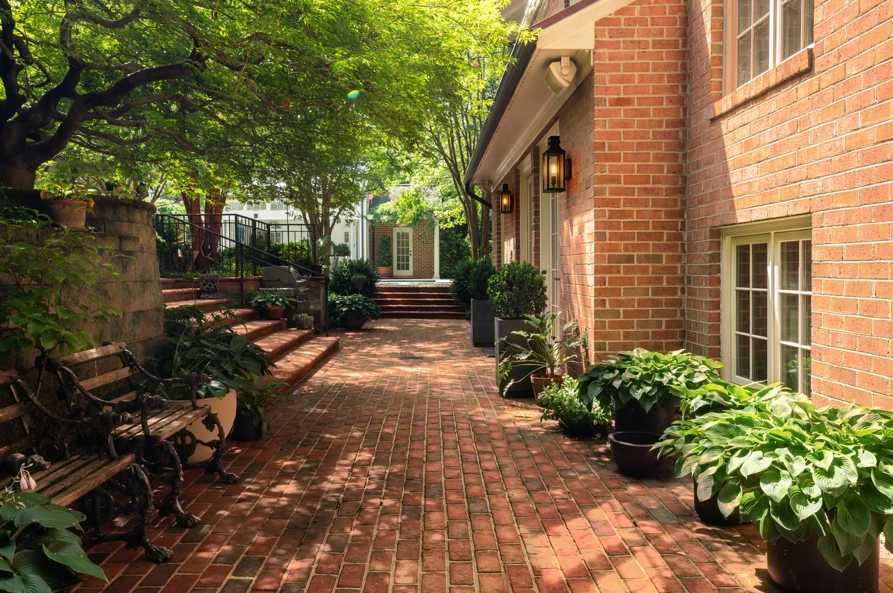 Synonymous with quiet luxury and understated elegance, Kemble Place is one of Washington’s most sought-after enclaves. Nestled within this exclusive community, 4814 Kemble Place occupies a rare double lot shaped by the graceful curve of the street, creating a rare combination of expansive space and privacy. The residence is an update on the classic red brick Colonial, blending timeless architectural principles with modern livability. Its façade nods to the grand estates of the past while incorporating contemporary elements, creating an unmistakable presence. A dramatic, offset entry introduces the home through a transverse limestone gallery, where a formal powder room and coat closet are discreetly tucked away. Natural light pours into the living spaces through elegant casement windows, highlighting substantial millwork and thoughtful architectural detailing. The sweeping custom designed staircase, floating above a dramatic picture window, aligns beautifully with the formal living room. Anchored by an English limestone fireplace and framed by a balcony overlooking the streetscape, it exudes both scale and refinement. Adjacent, the stately dining room flows into a bay-windowed breakfast room with built-in cabinetry, connecting to the kitchen.. The kitchen featuring luxurious marble countertops, a Thermador cooktop capped by an oversized stainless steel hood, integrated panel Sub-Zero refrigerator/freezer and wine storage modules, Miele ovens and dishwasher, SieMatic cabinetry, and a waterfall wooden bar at the back of the center island that creates seating for three. A 35” x 82” slab of veined marble sits behind the cooktop, cut so that the end pieces slide into the woodwork to reveal sets of lighted shelves. The kitchen is fully open to the adjacent family room, its wall of shelving and framed 65” TV niche infusing warmth and practicality into the space while two sets of French doors open onto the rear terrace. A private library/office with custom cabinetry and lighting and a wood-burning fireplace framed with Port Laurent marble complete the main level. The second floor is reached via a staircase with a pair of 11’ windows at the midway landing that affords the view of a specimen Japanese Maple tree. The staircase features a three-story hand-carved serpentine handrail that connects all floors of the house. At the second floor, a landing is illuminated by a skylight set in a vaulted ceiling lit by cove lighting. The capacious upper-level primary suite is accessed through an intimate vestibule, revealing a 25-foot, airy bedroom anchored on one end by a wood-burning fireplace. A stunning dressing room, whose perimeter is lined with custom closets, drawers, and a formal dressing table, serves as the transition into the primary bath. The marble-clad bath features a private nook for the oversized soaking tub, along with dual vanities, walk-in steam shower, and separate water closet. Three additional bedrooms branch off of the upper-level hallway, which is lit by three vaulted skylights. Each bedroom features ample storage space and an ensuite marble bath. A union of function and entertainment is found in the lower level. A 28-foot multi-purpose room, currently serving as an exercise suite, serves as the level’s main living area, while a professional temperature-controlled wine cellar with a capacity of almost 500 bottles plus shelving for cases is nearby. A dedicated laundry room, two separate storage rooms, a full bath, and access to the two-car garage complete the picture. A private resort, the home’s outdoor space is characterized by a seamless blend of manicured landscaping and extensive hardscaping. A raised patio overlooks mature trees and boxwood hedges that combine with rough retaining walls to create a verdant oasis. At the heart of the expansive grounds behind the main residence is a 40’ X 20’ pool with integrated spa, finished in bluestone and equipped with an automatic cover. The adjacent pool house opens via NanaWall to an al fresco lounge and long wet bar and features a full bath, garden shed and work room. A separate guest house with kitchenette and full bath separated from the pool house by double pergola covered terraces complete the private retreat—one that belies the home’s close-in location. Minutes from Georgetown, Downtown, and major commuter routes, 4814 Kemble Place stands as an exemplary residence at the pinnacle of Washington living.