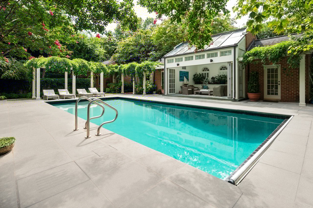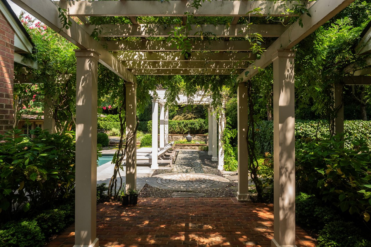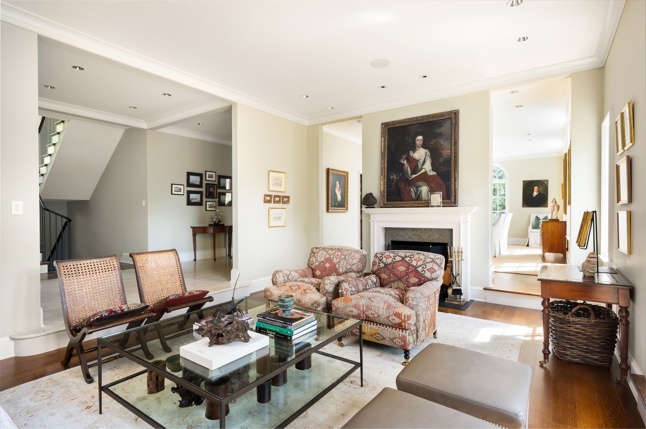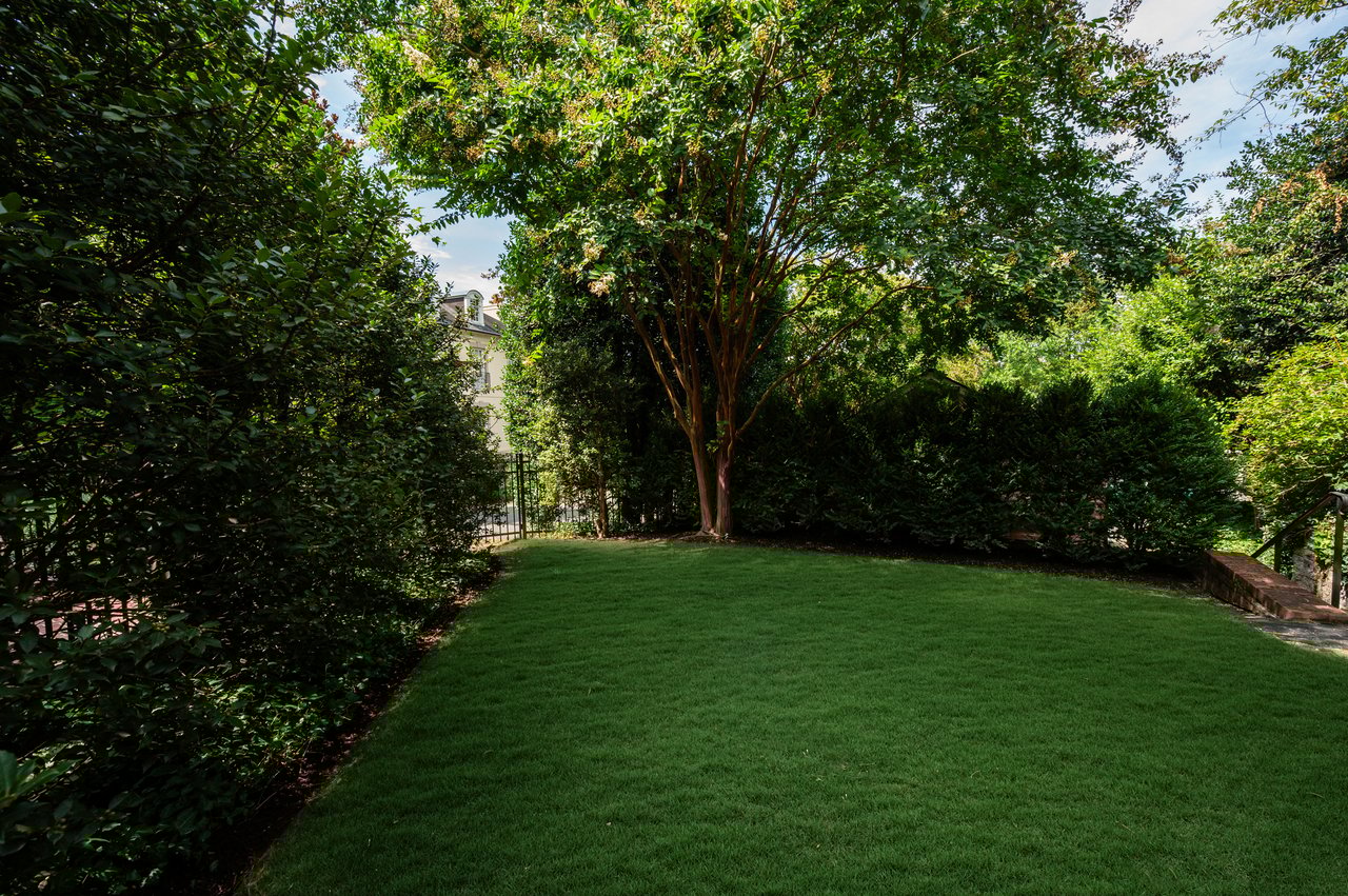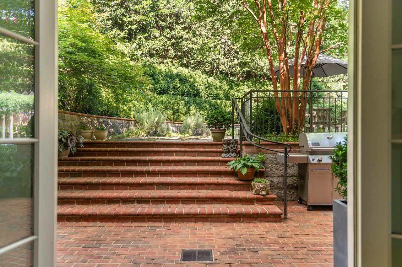 Synonymous with quiet luxury and understated elegance, Kemble Place is one of Washington’s most sought-after enclaves. Nestled within this exclusive community, 4814 Kemble Place occupies a rare double lot shaped by the graceful curve of the street, creating a rare combination of expansive space and privacy. The residence is an update on the classic red brick Colonial, blending timeless architectural principles with modern livability. Its façade nods to the grand estates of the past while incorporating contemporary elements, creating an unmistakable presence. A dramatic, offset entry introduces the home through a transverse limestone gallery, where a formal powder room and coat closet are discreetly tucked away. Natural light pours into the living spaces through elegant casement windows, highlighting substantial millwork and thoughtful architectural detailing. The sweeping custom designed staircase, floating above a dramatic picture window, aligns beautifully with the formal living room. Anchored by an English limestone fireplace and framed by a balcony overlooking the streetscape, it exudes both scale and refinement. Adjacent, the stately dining room flows into a bay-windowed breakfast room with built-in cabinetry, connecting to the kitchen.. The kitchen featuring luxurious marble countertops, a Thermador cooktop capped by an oversized stainless steel hood, integrated panel Sub-Zero refrigerator/freezer and wine storage modules, Miele ovens and dishwasher, SieMatic cabinetry, and a waterfall wooden bar at the back of the center island that creates seating for three. A 35” x 82” slab of veined marble sits behind the cooktop, cut so that the end pieces slide into the woodwork to reveal sets of lighted shelves. The kitchen is fully open to the adjacent family room, its wall of shelving and framed 65” TV niche infusing warmth and practicality into the space while two sets of French doors open onto the rear terrace. A private library/office with custom cabinetry and lighting and a wood-burning fireplace framed with Port Laurent marble complete the main level. The second floor is reached via a staircase with a pair of 11’ windows at the midway landing that affords the view of a specimen Japanese Maple tree. The staircase features a three-story hand-carved serpentine handrail that connects all floors of the house. At the second floor, a landing is illuminated by a skylight set in a vaulted ceiling lit by cove lighting. The capacious upper-level primary suite is accessed through an intimate vestibule, revealing a 25-foot, airy bedroom anchored on one end by a wood-burning fireplace. A stunning dressing room, whose perimeter is lined with custom closets, drawers, and a formal dressing table, serves as the transition into the primary bath. The marble-clad bath features a private nook for the oversized soaking tub, along with dual vanities, walk-in steam shower, and separate water closet. Three additional bedrooms branch off of the upper-level hallway, which is lit by three vaulted skylights. Each bedroom features ample storage space and an ensuite marble bath. A union of function and entertainment is found in the lower level. A 28-foot multi-purpose room, currently serving as an exercise suite, serves as the level’s main living area, while a professional temperature-controlled wine cellar with a capacity of almost 500 bottles plus shelving for cases is nearby. A dedicated laundry room, two separate storage rooms, a full bath, and access to the two-car garage complete the picture. A private resort, the home’s outdoor space is characterized by a seamless blend of manicured landscaping and extensive hardscaping. A raised patio overlooks mature trees and boxwood hedges that combine with rough retaining walls to create a verdant oasis. At the heart of the expansive grounds behind the main residence is a 40’ X 20’ pool with integrated spa, finished in bluestone and equipped with an automatic cover. The adjacent pool house opens via NanaWall to an al fresco lounge and long wet bar and features a full bath, garden shed and work room. A separate guest house with kitchenette and full bath separated from the pool house by double pergola covered terraces complete the private retreat—one that belies the home’s close-in location. Minutes from Georgetown, Downtown, and major commuter routes, 4814 Kemble Place stands as an exemplary residence at the pinnacle of Washington living.