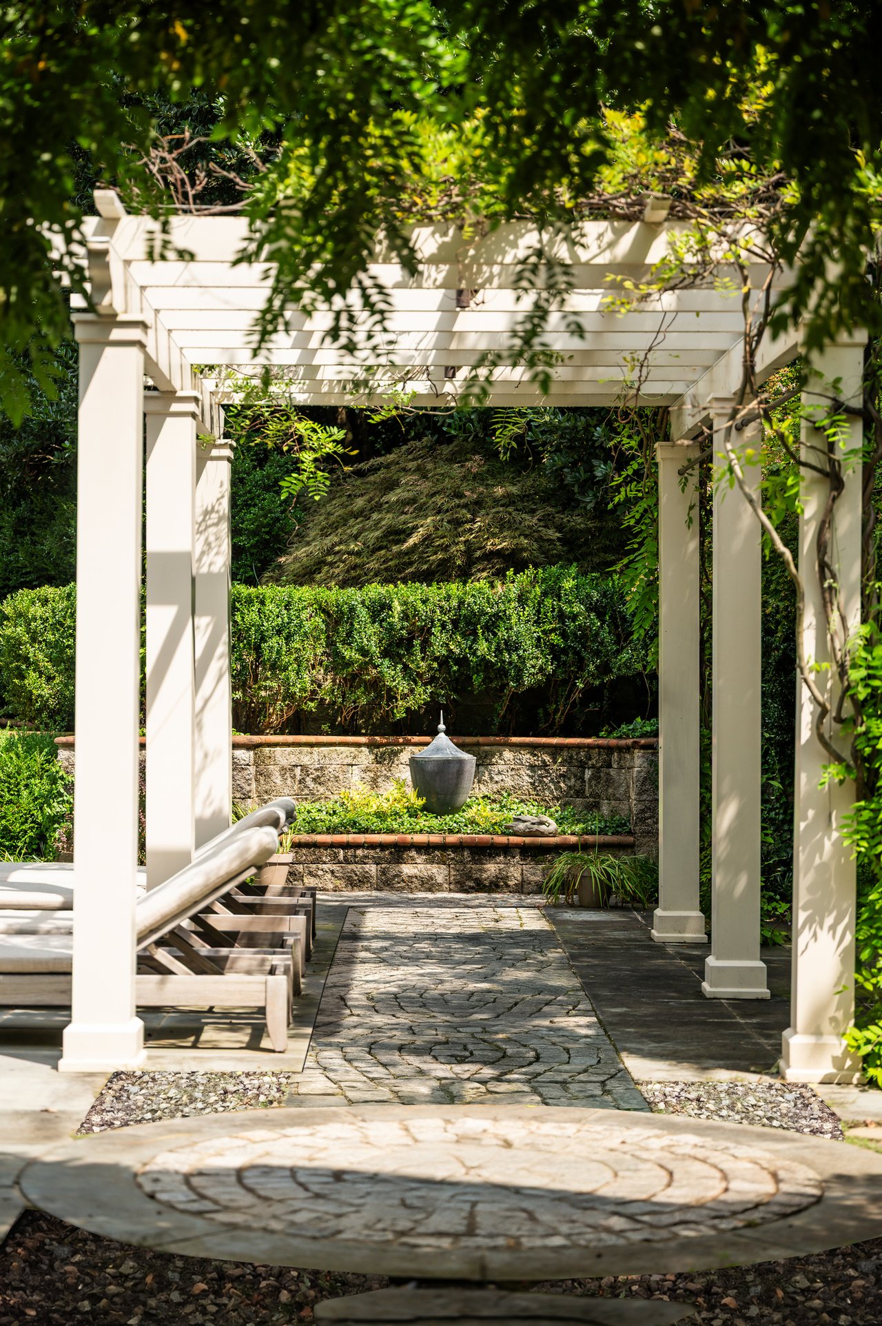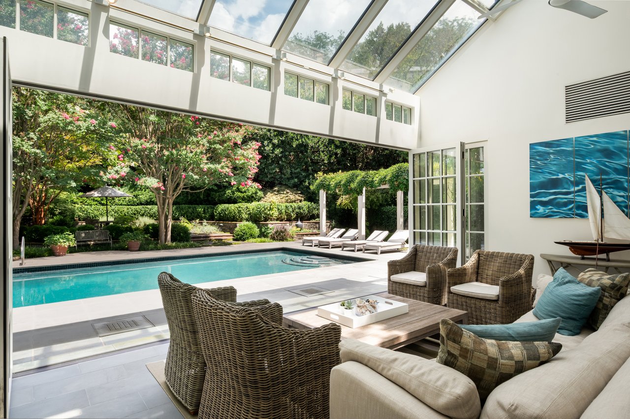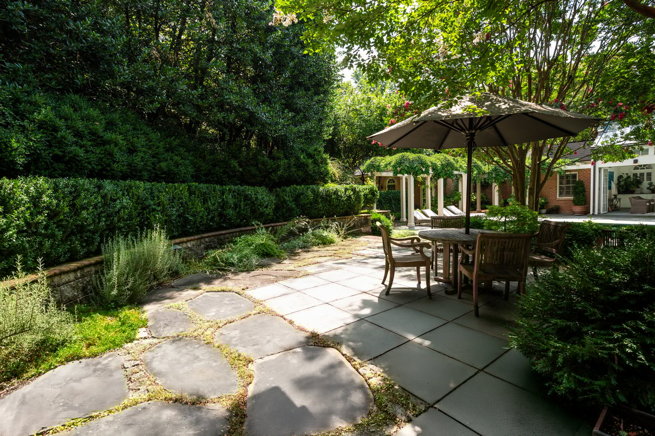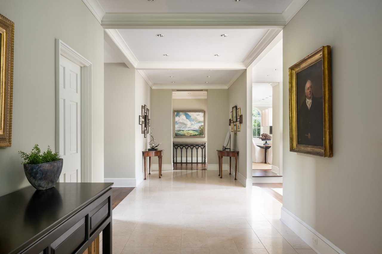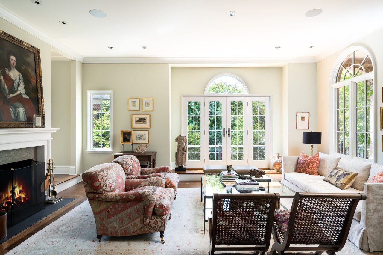 Synonymous with quiet luxury and understated elegance, Kemble Place is one of Washington’s most sought-after enclaves. Nestled within this exclusive community, 4814 Kemble Place occupies a rare double lot shaped by the graceful curve of the street, creating a rare combination of expansive space and privacy. The residence is an update on the classic red brick Colonial, blending timeless architectural principles with modern livability. Its façade nods to the grand estates of the past while incorporating contemporary elements, creating an unmistakable presence. A dramatic, offset entry introduces the home through a transverse limestone gallery, where a formal powder room and coat closet are discreetly tucked away. Natural light pours into the living spaces through elegant casement windows, highlighting substantial millwork and thoughtful architectural detailing. The sweeping custom designed staircase, floating above a dramatic picture window, aligns beautifully with the formal living room. Anchored by an English limestone fireplace and framed by a balcony overlooking the streetscape, it exudes both scale and refinement. Adjacent, the stately dining room flows into a bay-windowed breakfast room with built-in cabinetry, connecting to the kitchen.. The kitchen featuring luxurious marble countertops, a Thermador cooktop capped by an oversized stainless steel hood, integrated panel Sub-Zero refrigerator/freezer and wine storage modules, Miele ovens and dishwasher, SieMatic cabinetry, and a waterfall wooden bar at the back of the center island that creates seating for three. A 35” x 82” slab of veined marble sits behind the cooktop, cut so that the end pieces slide into the woodwork to reveal sets of lighted shelves. The kitchen is fully open to the adjacent family room, its wall of shelving and framed 65” TV niche infusing warmth and practicality into the space while two sets of French doors open onto the rear terrace. A private library/office with custom cabinetry and lighting and a wood-burning fireplace framed with Port Laurent marble complete the main level. The second floor is reached via a staircase with a pair of 11’ windows at the midway landing that affords the view of a specimen Japanese Maple tree. The staircase features a three-story hand-carved serpentine handrail that connects all floors of the house. At the second floor, a landing is illuminated by a skylight set in a vaulted ceiling lit by cove lighting. The capacious upper-level primary suite is accessed through an intimate vestibule, revealing a 25-foot, airy bedroom anchored on one end by a wood-burning fireplace. A stunning dressing room, whose perimeter is lined with custom closets, drawers, and a formal dressing table, serves as the transition into the primary bath. The marble-clad bath features a private nook for the oversized soaking tub, along with dual vanities, walk-in steam shower, and separate water closet. Three additional bedrooms branch off of the upper-level hallway, which is lit by three vaulted skylights. Each bedroom features ample storage space and an ensuite marble bath. A union of function and entertainment is found in the lower level. A 28-foot multi-purpose room, currently serving as an exercise suite, serves as the level’s main living area, while a professional temperature-controlled wine cellar with a capacity of almost 500 bottles plus shelving for cases is nearby. A dedicated laundry room, two separate storage rooms, a full bath, and access to the two-car garage complete the picture. A private resort, the home’s outdoor space is characterized by a seamless blend of manicured landscaping and extensive hardscaping. A raised patio overlooks mature trees and boxwood hedges that combine with rough retaining walls to create a verdant oasis. At the heart of the expansive grounds behind the main residence is a 40’ X 20’ pool with integrated spa, finished in bluestone and equipped with an automatic cover. The adjacent pool house opens via NanaWall to an al fresco lounge and long wet bar and features a full bath, garden shed and work room. A separate guest house with kitchenette and full bath separated from the pool house by double pergola covered terraces complete the private retreat—one that belies the home’s close-in location. Minutes from Georgetown, Downtown, and major commuter routes, 4814 Kemble Place stands as an exemplary residence at the pinnacle of Washington living.