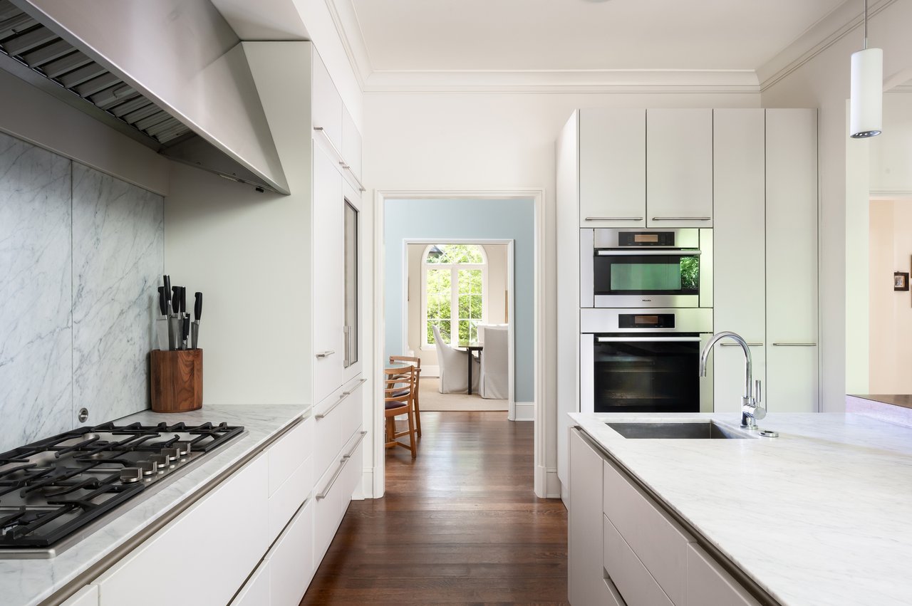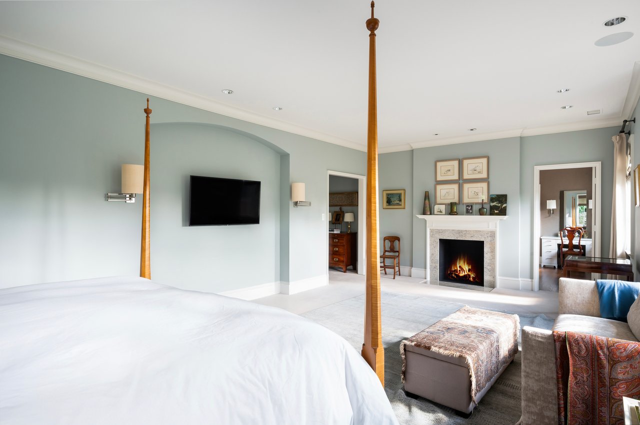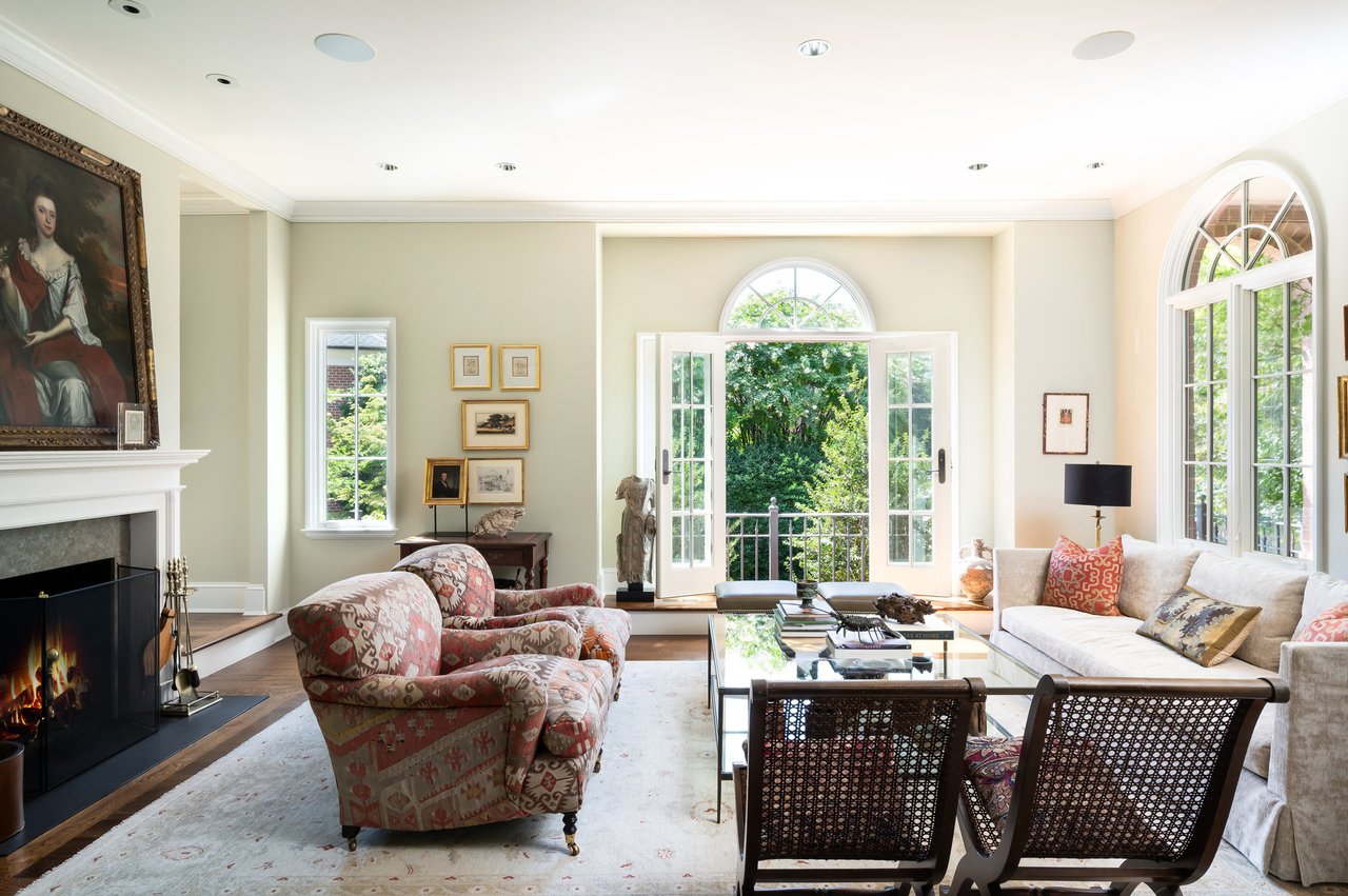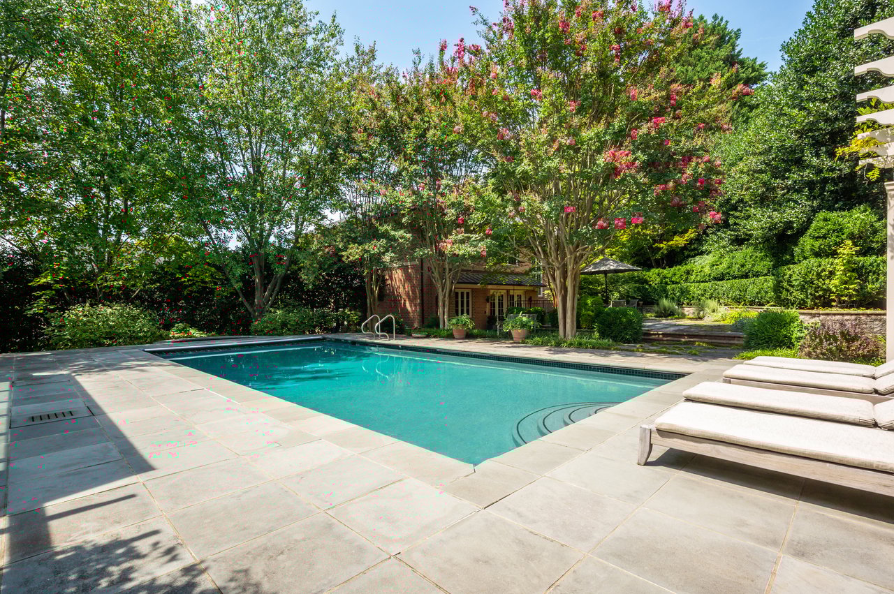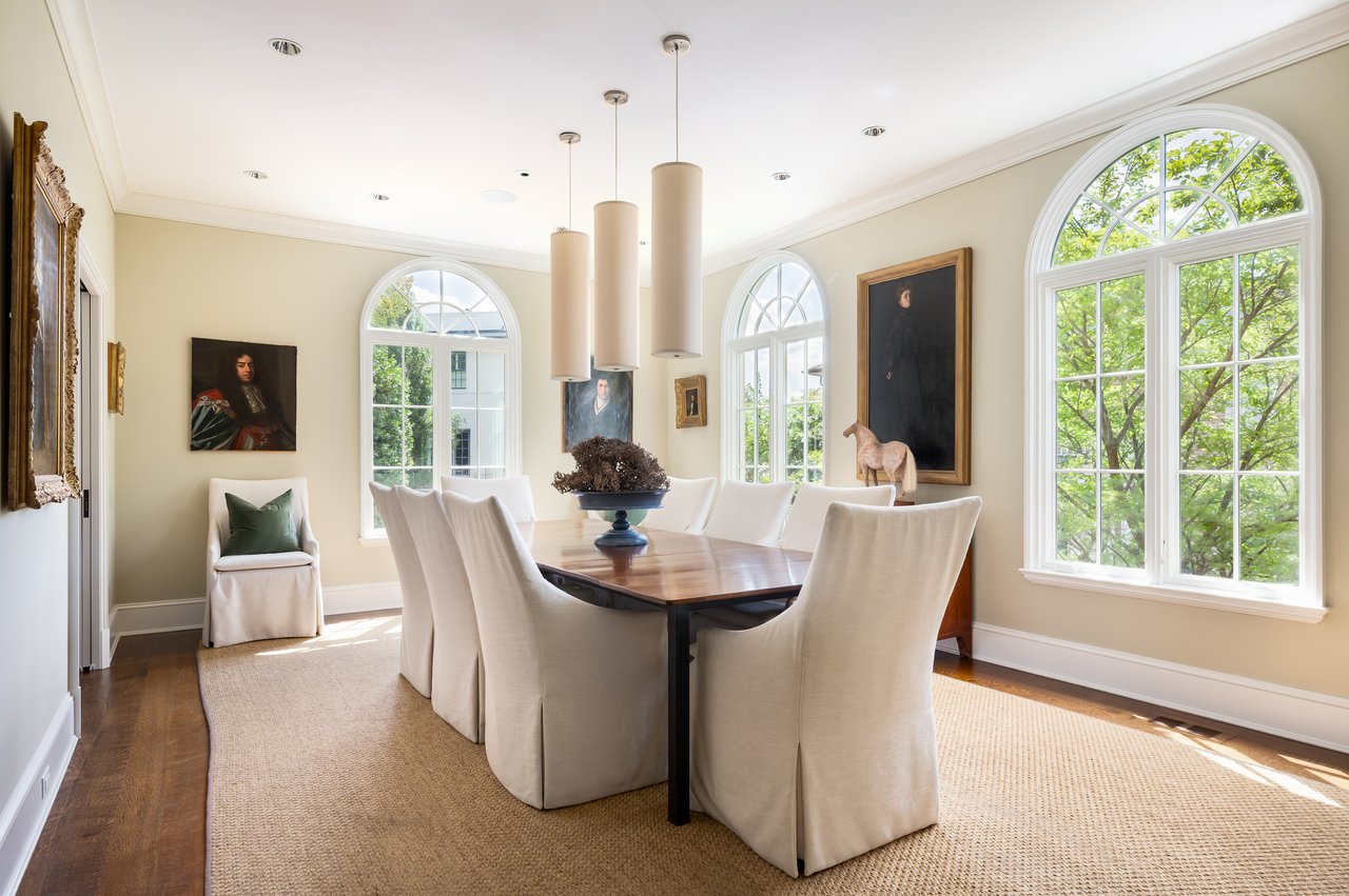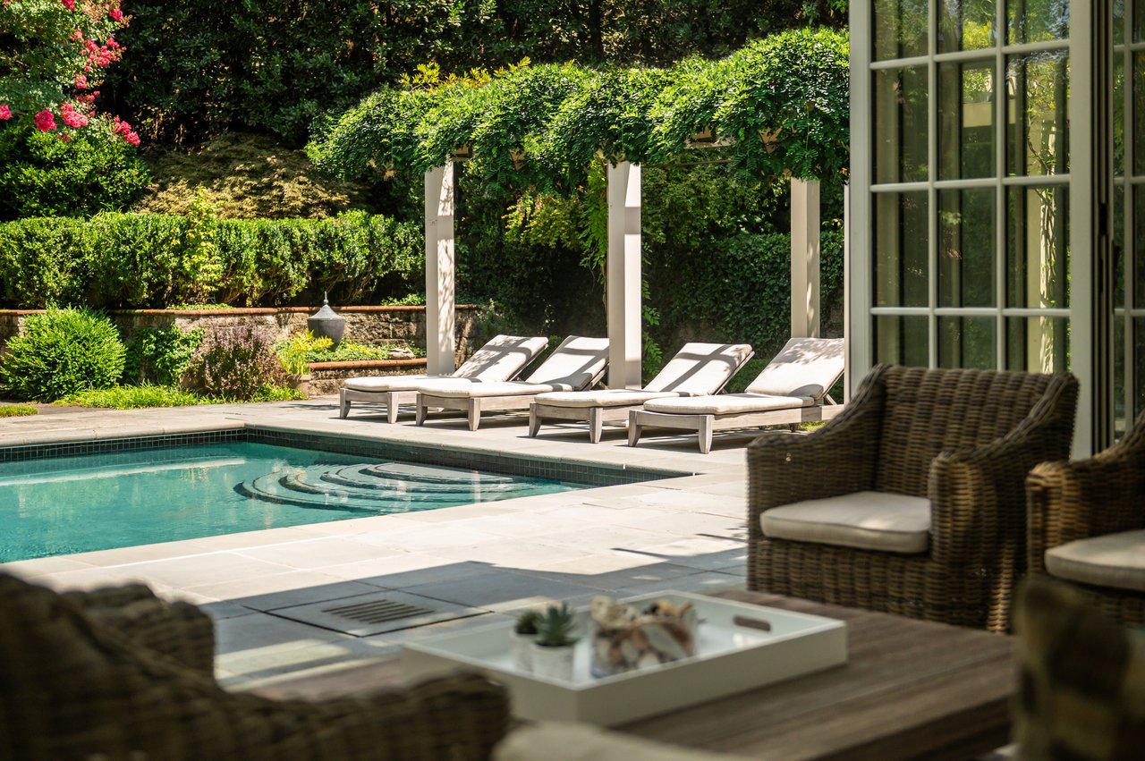 Synonymous with quiet luxury and understated elegance, Kemble Place is one of Washington’s most sought-after enclaves. Nestled within this exclusive community, 4814 Kemble Place occupies a rare double lot shaped by the graceful curve of the street, creating a rare combination of expansive space and privacy. The residence is an update on the classic red brick Colonial, blending timeless architectural principles with modern livability. Its façade nods to the grand estates of the past while incorporating contemporary elements, creating an unmistakable presence. A dramatic, offset entry introduces the home through a transverse limestone gallery, where a formal powder room and coat closet are discreetly tucked away. Natural light pours into the living spaces through elegant casement windows, highlighting substantial millwork and thoughtful architectural detailing. The sweeping custom designed staircase, floating above a dramatic picture window, aligns beautifully with the formal living room. Anchored by an English limestone fireplace and framed by a balcony overlooking the streetscape, it exudes both scale and refinement. Adjacent, the stately dining room flows into a bay-windowed breakfast room with built-in cabinetry, connecting to the kitchen.. The kitchen featuring luxurious marble countertops, a Thermador cooktop capped by an oversized stainless steel hood, integrated panel Sub-Zero refrigerator/freezer and wine storage modules, Miele ovens and dishwasher, SieMatic cabinetry, and a waterfall wooden bar at the back of the center island that creates seating for three. A 35” x 82” slab of veined marble sits behind the cooktop, cut so that the end pieces slide into the woodwork to reveal sets of lighted shelves. The kitchen is fully open to the adjacent family room, its wall of shelving and framed 65” TV niche infusing warmth and practicality into the space while two sets of French doors open onto the rear terrace. A private library/office with custom cabinetry and lighting and a wood-burning fireplace framed with Port Laurent marble complete the main level. The second floor is reached via a staircase with a pair of 11’ windows at the midway landing that affords the view of a specimen Japanese Maple tree. The staircase features a three-story hand-carved serpentine handrail that connects all floors of the house. At the second floor, a landing is illuminated by a skylight set in a vaulted ceiling lit by cove lighting. The capacious upper-level primary suite is accessed through an intimate vestibule, revealing a 25-foot, airy bedroom anchored on one end by a wood-burning fireplace. A stunning dressing room, whose perimeter is lined with custom closets, drawers, and a formal dressing table, serves as the transition into the primary bath. The marble-clad bath features a private nook for the oversized soaking tub, along with dual vanities, walk-in steam shower, and separate water closet. Three additional bedrooms branch off of the upper-level hallway, which is lit by three vaulted skylights. Each bedroom features ample storage space and an ensuite marble bath. A union of function and entertainment is found in the lower level. A 28-foot multi-purpose room, currently serving as an exercise suite, serves as the level’s main living area, while a professional temperature-controlled wine cellar with a capacity of almost 500 bottles plus shelving for cases is nearby. A dedicated laundry room, two separate storage rooms, a full bath, and access to the two-car garage complete the picture. A private resort, the home’s outdoor space is characterized by a seamless blend of manicured landscaping and extensive hardscaping. A raised patio overlooks mature trees and boxwood hedges that combine with rough retaining walls to create a verdant oasis. At the heart of the expansive grounds behind the main residence is a 40’ X 20’ pool with integrated spa, finished in bluestone and equipped with an automatic cover. The adjacent pool house opens via NanaWall to an al fresco lounge and long wet bar and features a full bath, garden shed and work room. A separate guest house with kitchenette and full bath separated from the pool house by double pergola covered terraces complete the private retreat—one that belies the home’s close-in location. Minutes from Georgetown, Downtown, and major commuter routes, 4814 Kemble Place stands as an exemplary residence at the pinnacle of Washington living.