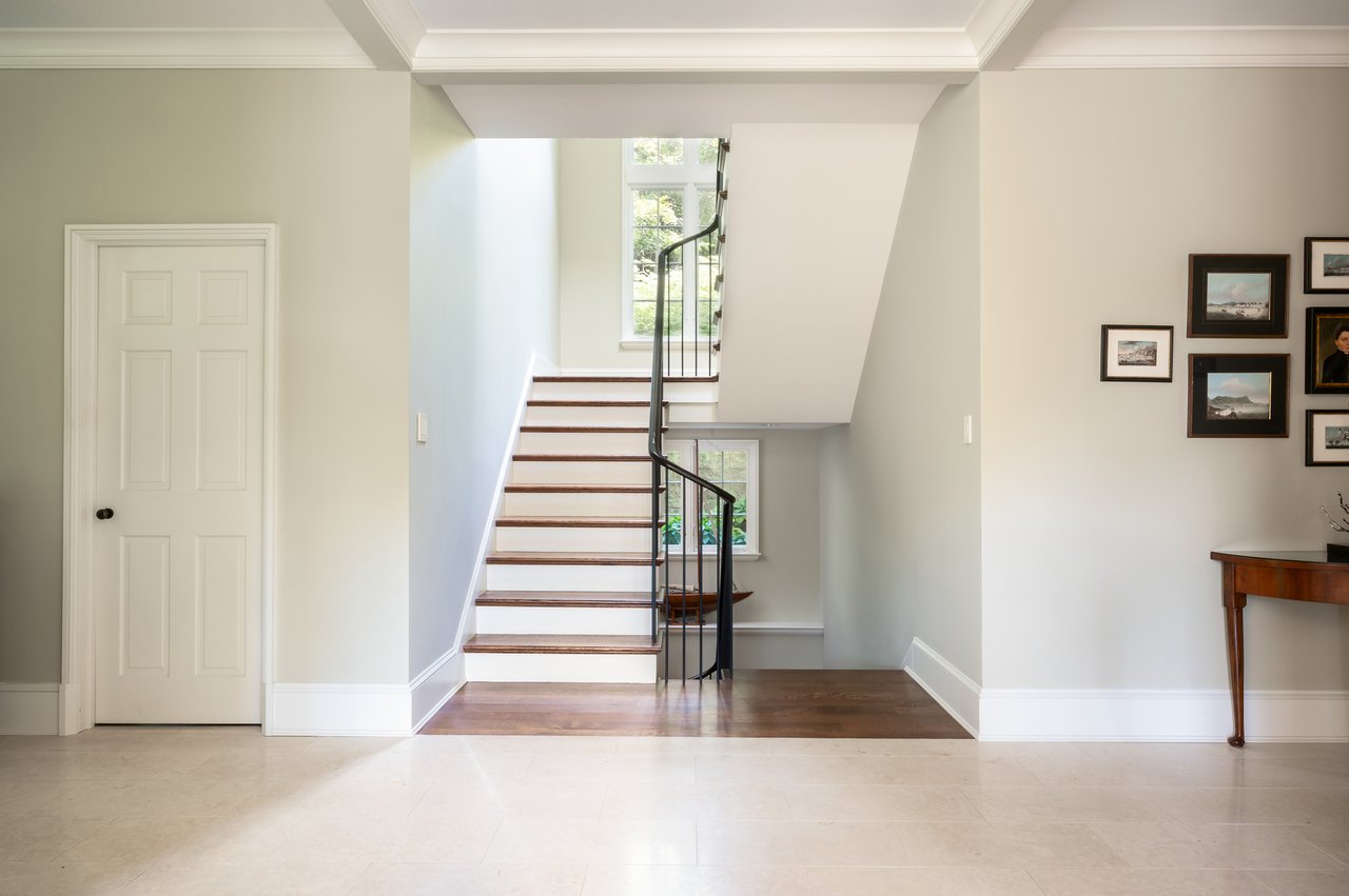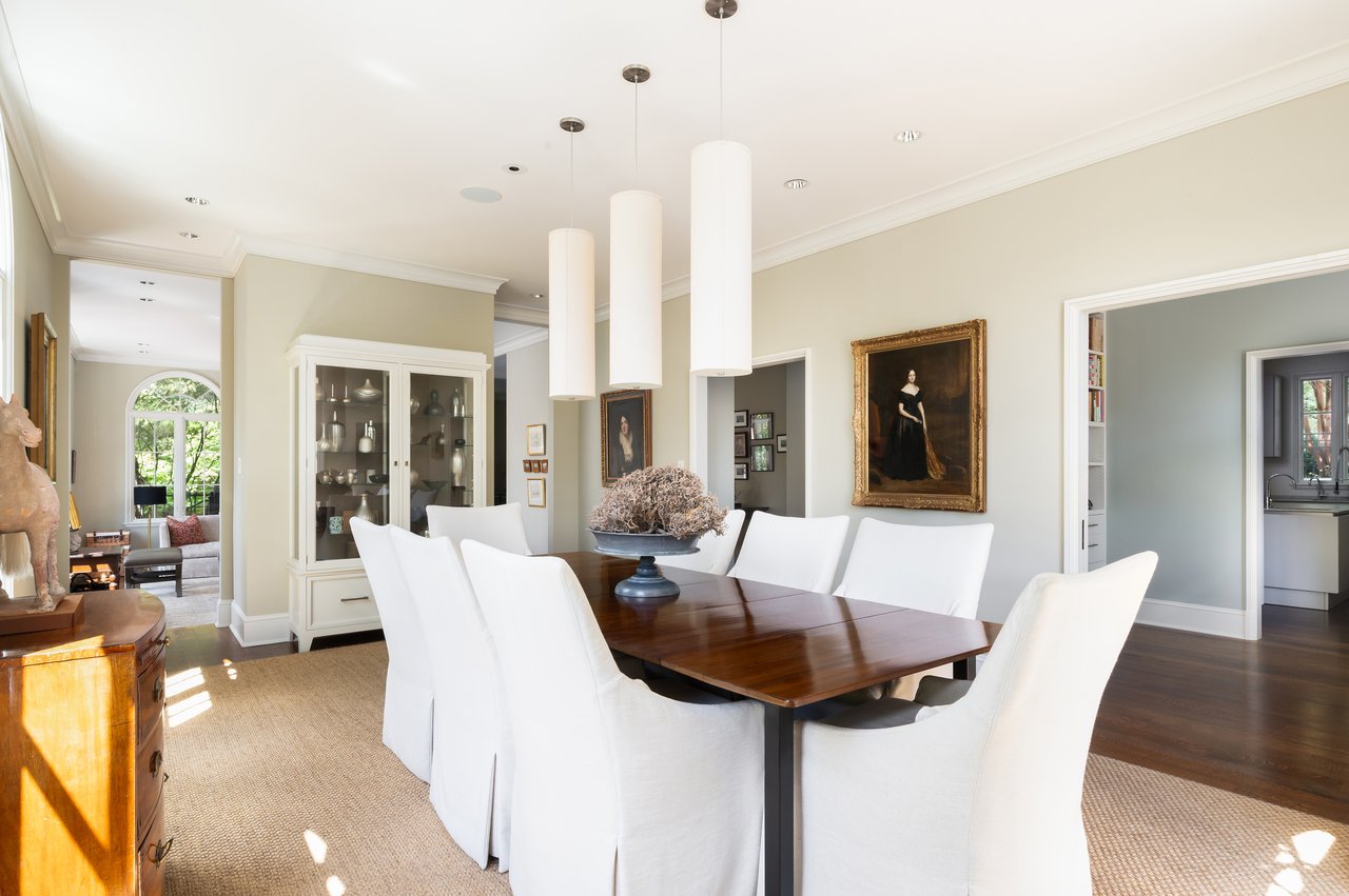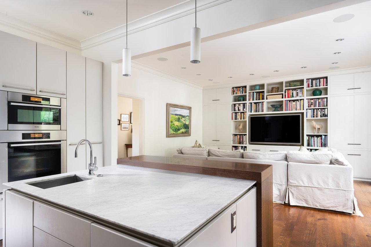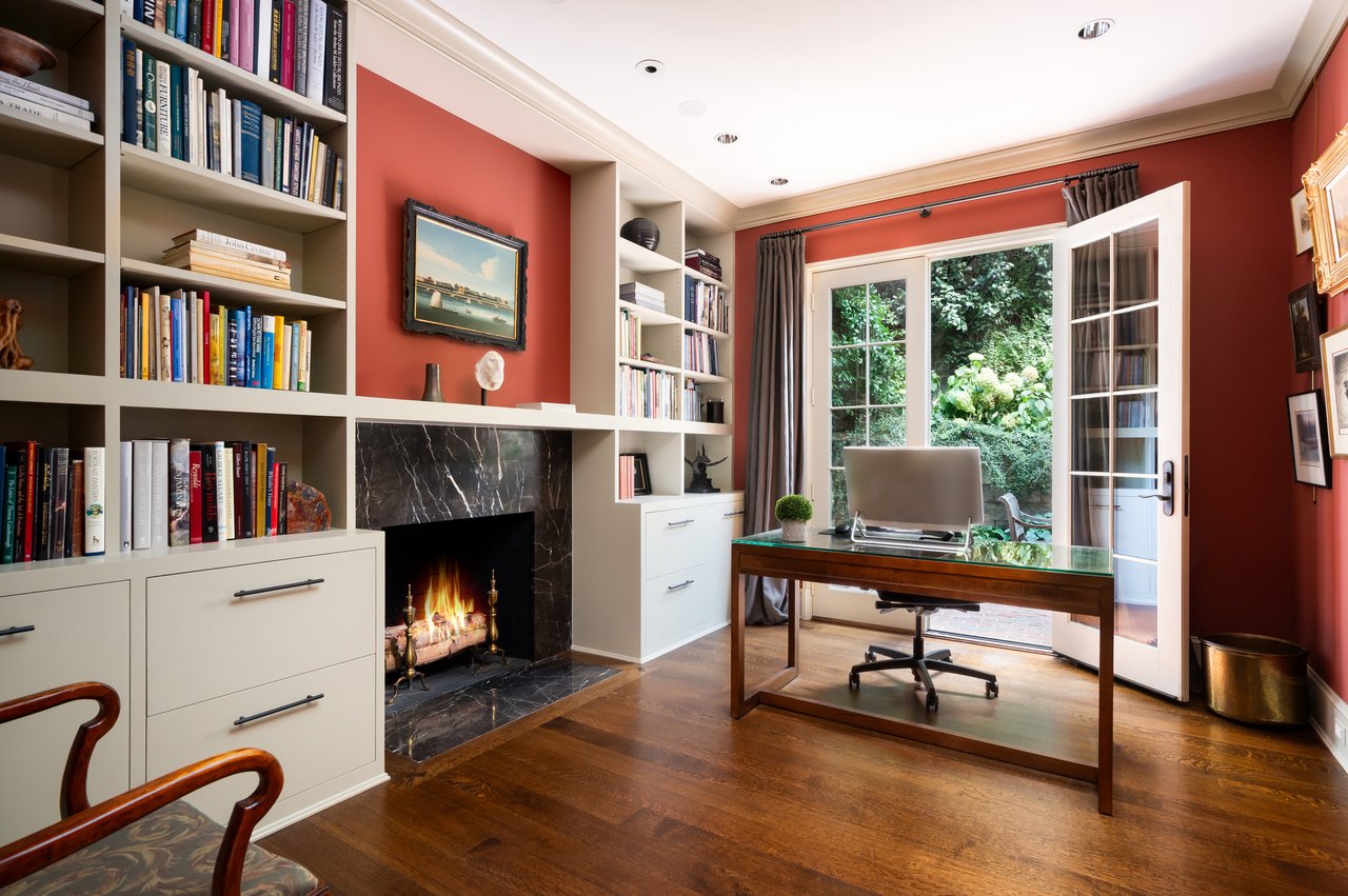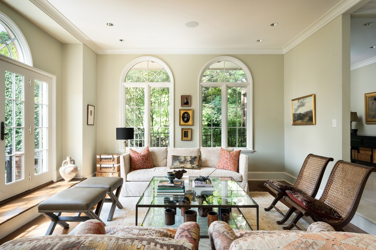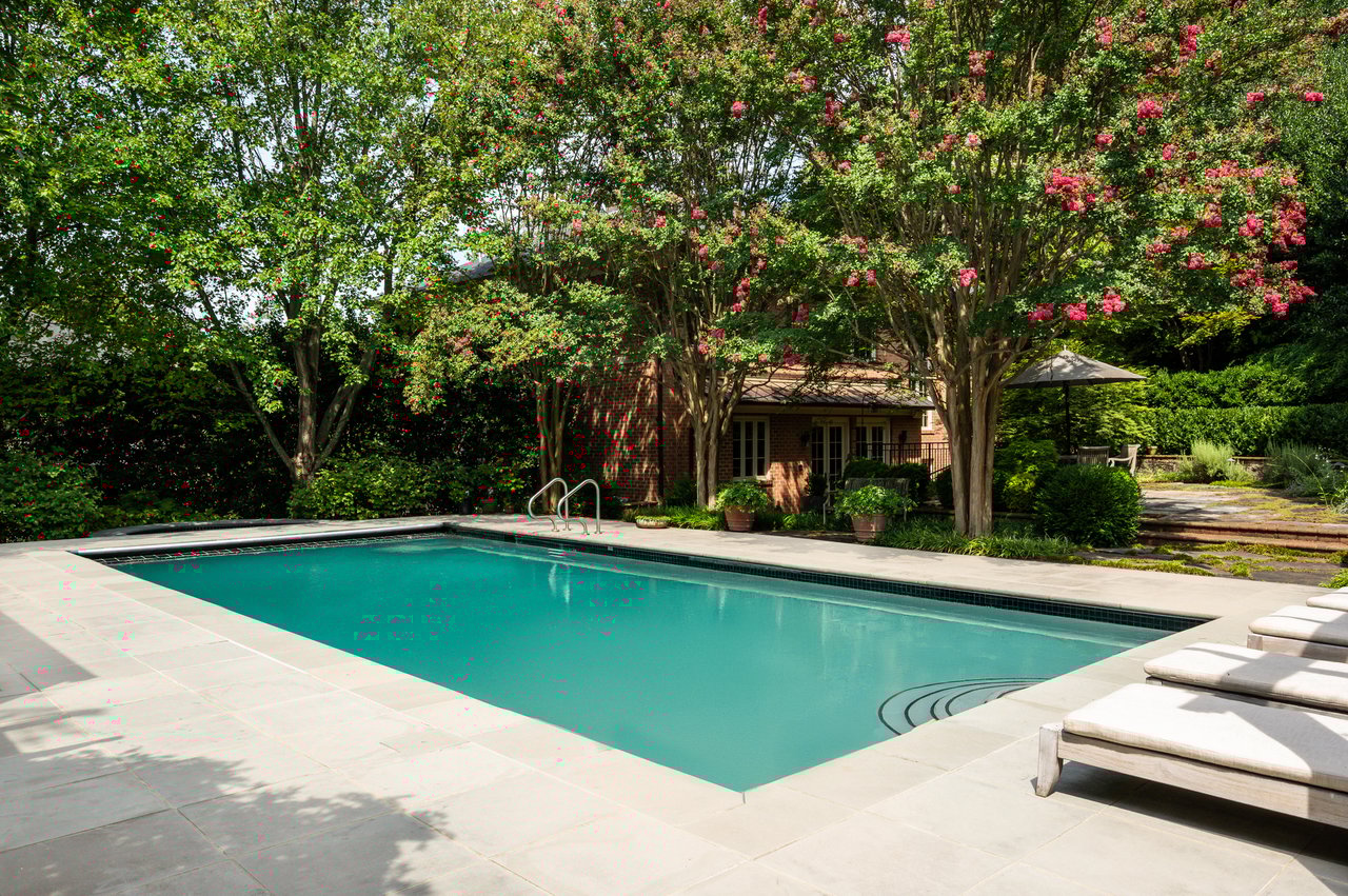 Synonymous with quiet luxury and understated elegance, Kemble Place is one of Washington’s most sought-after enclaves. Nestled within this exclusive community, 4814 Kemble Place occupies a rare double lot shaped by the graceful curve of the street, creating a rare combination of expansive space and privacy. The residence is an update on the classic red brick Colonial, blending timeless architectural principles with modern livability. Its façade nods to the grand estates of the past while incorporating contemporary elements, creating an unmistakable presence. A dramatic, offset entry introduces the home through a transverse limestone gallery, where a formal powder room and coat closet are discreetly tucked away. Natural light pours into the living spaces through elegant casement windows, highlighting substantial millwork and thoughtful architectural detailing. The sweeping custom designed staircase, floating above a dramatic picture window, aligns beautifully with the formal living room. Anchored by an English limestone fireplace and framed by a balcony overlooking the streetscape, it exudes both scale and refinement. Adjacent, the stately dining room flows into a bay-windowed breakfast room with built-in cabinetry, connecting to the kitchen.. The kitchen featuring luxurious marble countertops, a Thermador cooktop capped by an oversized stainless steel hood, integrated panel Sub-Zero refrigerator/freezer and wine storage modules, Miele ovens and dishwasher, SieMatic cabinetry, and a waterfall wooden bar at the back of the center island that creates seating for three. A 35” x 82” slab of veined marble sits behind the cooktop, cut so that the end pieces slide into the woodwork to reveal sets of lighted shelves. The kitchen is fully open to the adjacent family room, its wall of shelving and framed 65” TV niche infusing warmth and practicality into the space while two sets of French doors open onto the rear terrace. A private library/office with custom cabinetry and lighting and a wood-burning fireplace framed with Port Laurent marble complete the main level. The second floor is reached via a staircase with a pair of 11’ windows at the midway landing that affords the view of a specimen Japanese Maple tree. The staircase features a three-story hand-carved serpentine handrail that connects all floors of the house. At the second floor, a landing is illuminated by a skylight set in a vaulted ceiling lit by cove lighting. The capacious upper-level primary suite is accessed through an intimate vestibule, revealing a 25-foot, airy bedroom anchored on one end by a wood-burning fireplace. A stunning dressing room, whose perimeter is lined with custom closets, drawers, and a formal dressing table, serves as the transition into the primary bath. The marble-clad bath features a private nook for the oversized soaking tub, along with dual vanities, walk-in steam shower, and separate water closet. Three additional bedrooms branch off of the upper-level hallway, which is lit by three vaulted skylights. Each bedroom features ample storage space and an ensuite marble bath. A union of function and entertainment is found in the lower level. A 28-foot multi-purpose room, currently serving as an exercise suite, serves as the level’s main living area, while a professional temperature-controlled wine cellar with a capacity of almost 500 bottles plus shelving for cases is nearby. A dedicated laundry room, two separate storage rooms, a full bath, and access to the two-car garage complete the picture. A private resort, the home’s outdoor space is characterized by a seamless blend of manicured landscaping and extensive hardscaping. A raised patio overlooks mature trees and boxwood hedges that combine with rough retaining walls to create a verdant oasis. At the heart of the expansive grounds behind the main residence is a 40’ X 20’ pool with integrated spa, finished in bluestone and equipped with an automatic cover. The adjacent pool house opens via NanaWall to an al fresco lounge and long wet bar and features a full bath, garden shed and work room. A separate guest house with kitchenette and full bath separated from the pool house by double pergola covered terraces complete the private retreat—one that belies the home’s close-in location. Minutes from Georgetown, Downtown, and major commuter routes, 4814 Kemble Place stands as an exemplary residence at the pinnacle of Washington living.