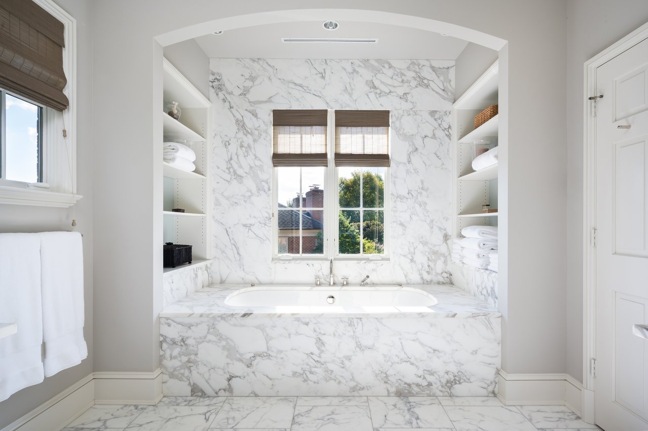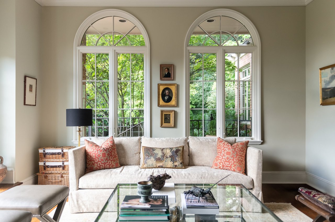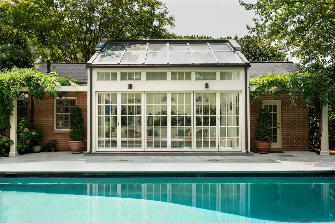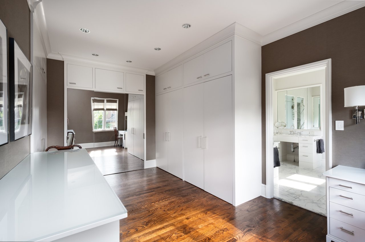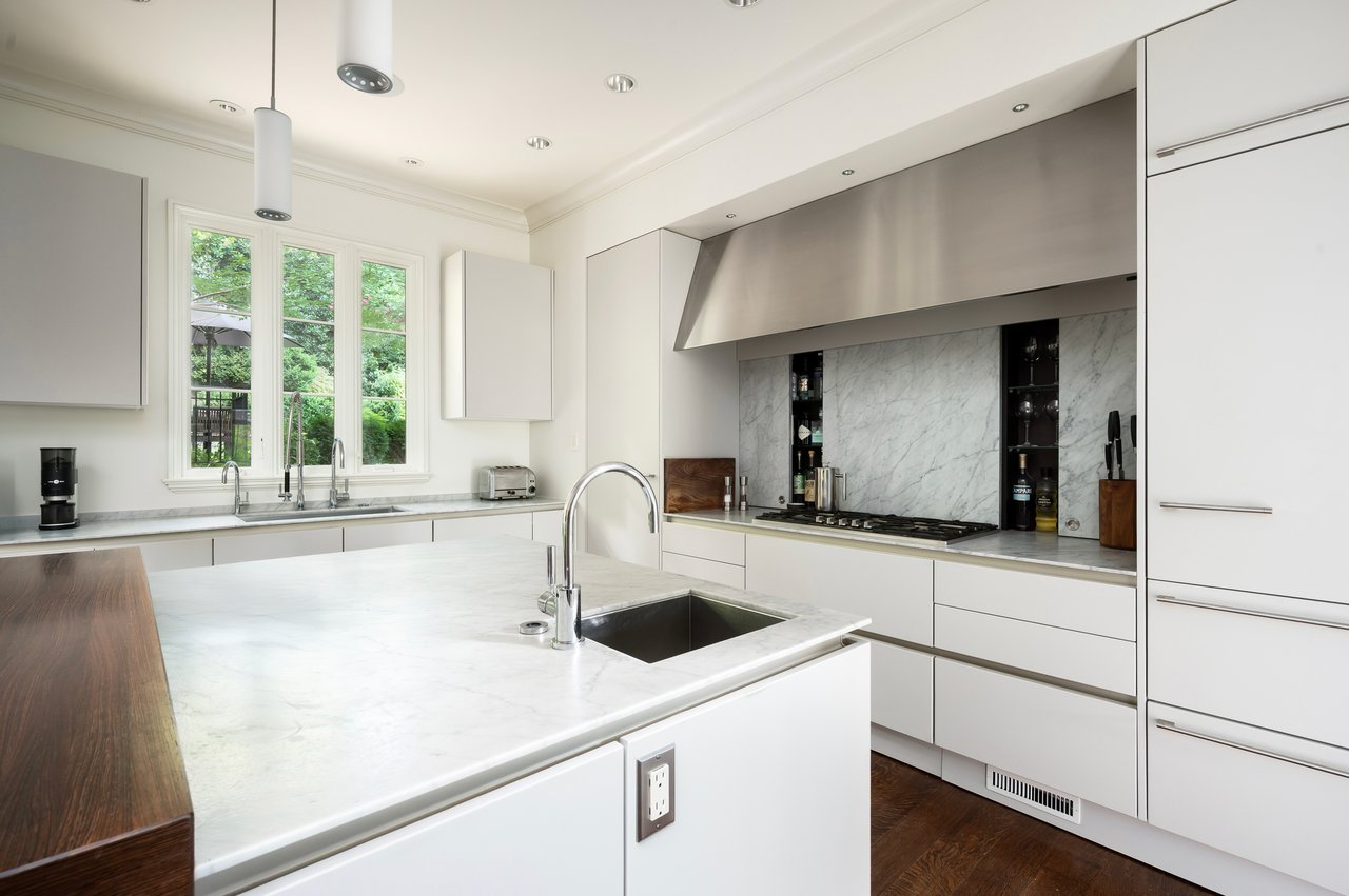 Synonymous with quiet luxury and understated elegance, Kemble Place is one of Washington’s most sought-after enclaves. Nestled within this exclusive community, 4814 Kemble Place occupies a rare double lot shaped by the graceful curve of the street, creating a rare combination of expansive space and privacy. The residence is an update on the classic red brick Colonial, blending timeless architectural principles with modern livability. Its façade nods to the grand estates of the past while incorporating contemporary elements, creating an unmistakable presence. A dramatic, offset entry introduces the home through a transverse limestone gallery, where a formal powder room and coat closet are discreetly tucked away. Natural light pours into the living spaces through elegant casement windows, highlighting substantial millwork and thoughtful architectural detailing. The sweeping custom designed staircase, floating above a dramatic picture window, aligns beautifully with the formal living room. Anchored by an English limestone fireplace and framed by a balcony overlooking the streetscape, it exudes both scale and refinement. Adjacent, the stately dining room flows into a bay-windowed breakfast room with built-in cabinetry, connecting to the kitchen.. The kitchen featuring luxurious marble countertops, a Thermador cooktop capped by an oversized stainless steel hood, integrated panel Sub-Zero refrigerator/freezer and wine storage modules, Miele ovens and dishwasher, SieMatic cabinetry, and a waterfall wooden bar at the back of the center island that creates seating for three. A 35” x 82” slab of veined marble sits behind the cooktop, cut so that the end pieces slide into the woodwork to reveal sets of lighted shelves. The kitchen is fully open to the adjacent family room, its wall of shelving and framed 65” TV niche infusing warmth and practicality into the space while two sets of French doors open onto the rear terrace. A private library/office with custom cabinetry and lighting and a wood-burning fireplace framed with Port Laurent marble complete the main level. The second floor is reached via a staircase with a pair of 11’ windows at the midway landing that affords the view of a specimen Japanese Maple tree. The staircase features a three-story hand-carved serpentine handrail that connects all floors of the house. At the second floor, a landing is illuminated by a skylight set in a vaulted ceiling lit by cove lighting. The capacious upper-level primary suite is accessed through an intimate vestibule, revealing a 25-foot, airy bedroom anchored on one end by a wood-burning fireplace. A stunning dressing room, whose perimeter is lined with custom closets, drawers, and a formal dressing table, serves as the transition into the primary bath. The marble-clad bath features a private nook for the oversized soaking tub, along with dual vanities, walk-in steam shower, and separate water closet. Three additional bedrooms branch off of the upper-level hallway, which is lit by three vaulted skylights. Each bedroom features ample storage space and an ensuite marble bath. A union of function and entertainment is found in the lower level. A 28-foot multi-purpose room, currently serving as an exercise suite, serves as the level’s main living area, while a professional temperature-controlled wine cellar with a capacity of almost 500 bottles plus shelving for cases is nearby. A dedicated laundry room, two separate storage rooms, a full bath, and access to the two-car garage complete the picture. A private resort, the home’s outdoor space is characterized by a seamless blend of manicured landscaping and extensive hardscaping. A raised patio overlooks mature trees and boxwood hedges that combine with rough retaining walls to create a verdant oasis. At the heart of the expansive grounds behind the main residence is a 40’ X 20’ pool with integrated spa, finished in bluestone and equipped with an automatic cover. The adjacent pool house opens via NanaWall to an al fresco lounge and long wet bar and features a full bath, garden shed and work room. A separate guest house with kitchenette and full bath separated from the pool house by double pergola covered terraces complete the private retreat—one that belies the home’s close-in location. Minutes from Georgetown, Downtown, and major commuter routes, 4814 Kemble Place stands as an exemplary residence at the pinnacle of Washington living.