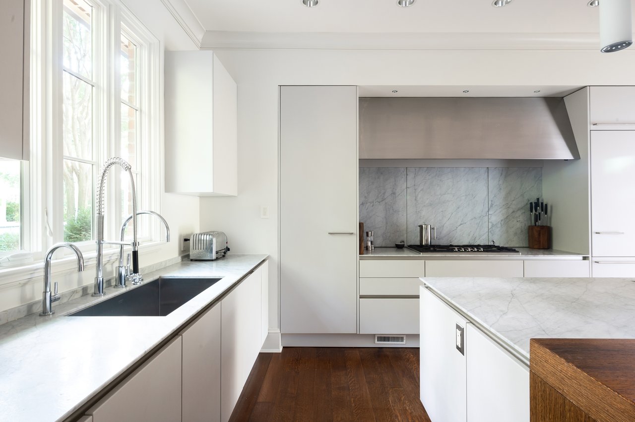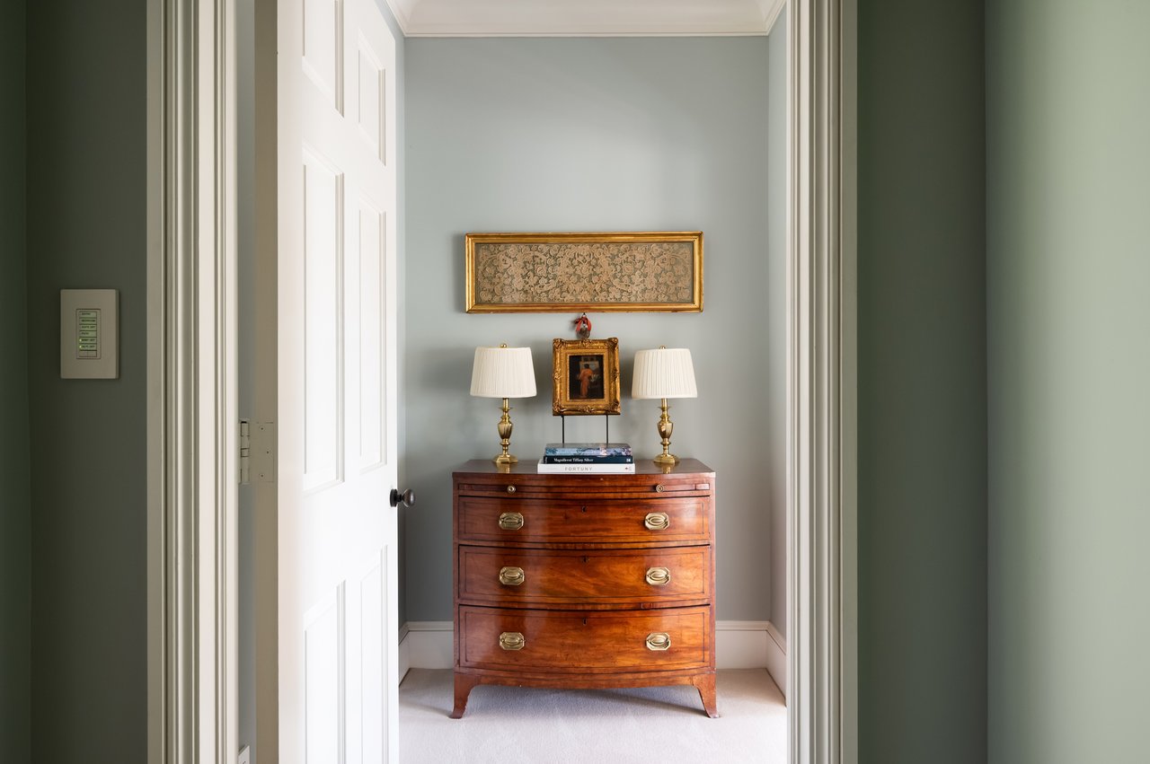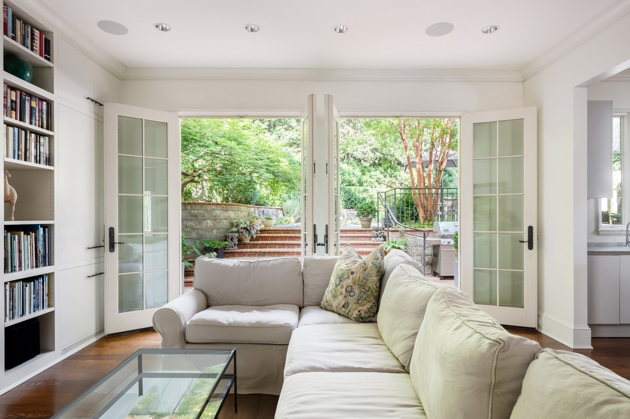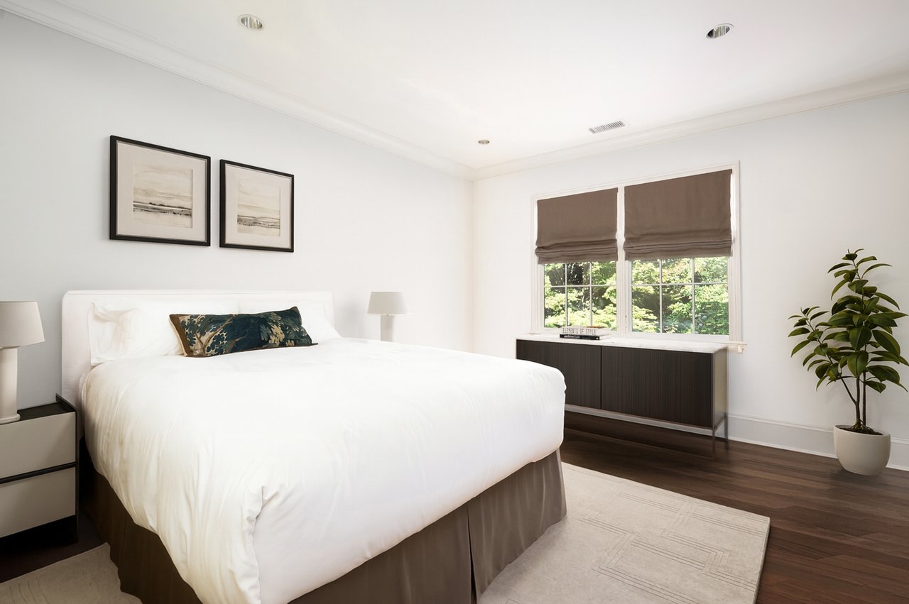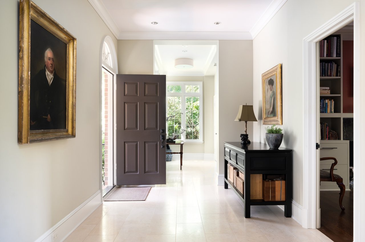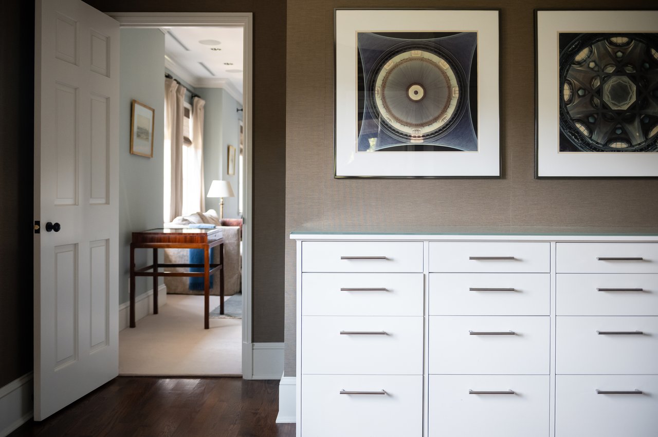 Synonymous with quiet luxury and understated elegance, Kemble Place is one of Washington’s most sought-after enclaves. Nestled within this exclusive community, 4814 Kemble Place occupies a rare double lot shaped by the graceful curve of the street, creating a rare combination of expansive space and privacy. The residence is an update on the classic red brick Colonial, blending timeless architectural principles with modern livability. Its façade nods to the grand estates of the past while incorporating contemporary elements, creating an unmistakable presence. A dramatic, offset entry introduces the home through a transverse limestone gallery, where a formal powder room and coat closet are discreetly tucked away. Natural light pours into the living spaces through elegant casement windows, highlighting substantial millwork and thoughtful architectural detailing. The sweeping custom designed staircase, floating above a dramatic picture window, aligns beautifully with the formal living room. Anchored by an English limestone fireplace and framed by a balcony overlooking the streetscape, it exudes both scale and refinement. Adjacent, the stately dining room flows into a bay-windowed breakfast room with built-in cabinetry, connecting to the kitchen.. The kitchen featuring luxurious marble countertops, a Thermador cooktop capped by an oversized stainless steel hood, integrated panel Sub-Zero refrigerator/freezer and wine storage modules, Miele ovens and dishwasher, SieMatic cabinetry, and a waterfall wooden bar at the back of the center island that creates seating for three. A 35” x 82” slab of veined marble sits behind the cooktop, cut so that the end pieces slide into the woodwork to reveal sets of lighted shelves. The kitchen is fully open to the adjacent family room, its wall of shelving and framed 65” TV niche infusing warmth and practicality into the space while two sets of French doors open onto the rear terrace. A private library/office with custom cabinetry and lighting and a wood-burning fireplace framed with Port Laurent marble complete the main level. The second floor is reached via a staircase with a pair of 11’ windows at the midway landing that affords the view of a specimen Japanese Maple tree. The staircase features a three-story hand-carved serpentine handrail that connects all floors of the house. At the second floor, a landing is illuminated by a skylight set in a vaulted ceiling lit by cove lighting. The capacious upper-level primary suite is accessed through an intimate vestibule, revealing a 25-foot, airy bedroom anchored on one end by a wood-burning fireplace. A stunning dressing room, whose perimeter is lined with custom closets, drawers, and a formal dressing table, serves as the transition into the primary bath. The marble-clad bath features a private nook for the oversized soaking tub, along with dual vanities, walk-in steam shower, and separate water closet. Three additional bedrooms branch off of the upper-level hallway, which is lit by three vaulted skylights. Each bedroom features ample storage space and an ensuite marble bath. A union of function and entertainment is found in the lower level. A 28-foot multi-purpose room, currently serving as an exercise suite, serves as the level’s main living area, while a professional temperature-controlled wine cellar with a capacity of almost 500 bottles plus shelving for cases is nearby. A dedicated laundry room, two separate storage rooms, a full bath, and access to the two-car garage complete the picture. A private resort, the home’s outdoor space is characterized by a seamless blend of manicured landscaping and extensive hardscaping. A raised patio overlooks mature trees and boxwood hedges that combine with rough retaining walls to create a verdant oasis. At the heart of the expansive grounds behind the main residence is a 40’ X 20’ pool with integrated spa, finished in bluestone and equipped with an automatic cover. The adjacent pool house opens via NanaWall to an al fresco lounge and long wet bar and features a full bath, garden shed and work room. A separate guest house with kitchenette and full bath separated from the pool house by double pergola covered terraces complete the private retreat—one that belies the home’s close-in location. Minutes from Georgetown, Downtown, and major commuter routes, 4814 Kemble Place stands as an exemplary residence at the pinnacle of Washington living.