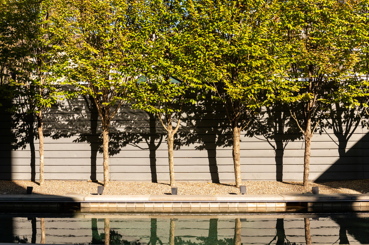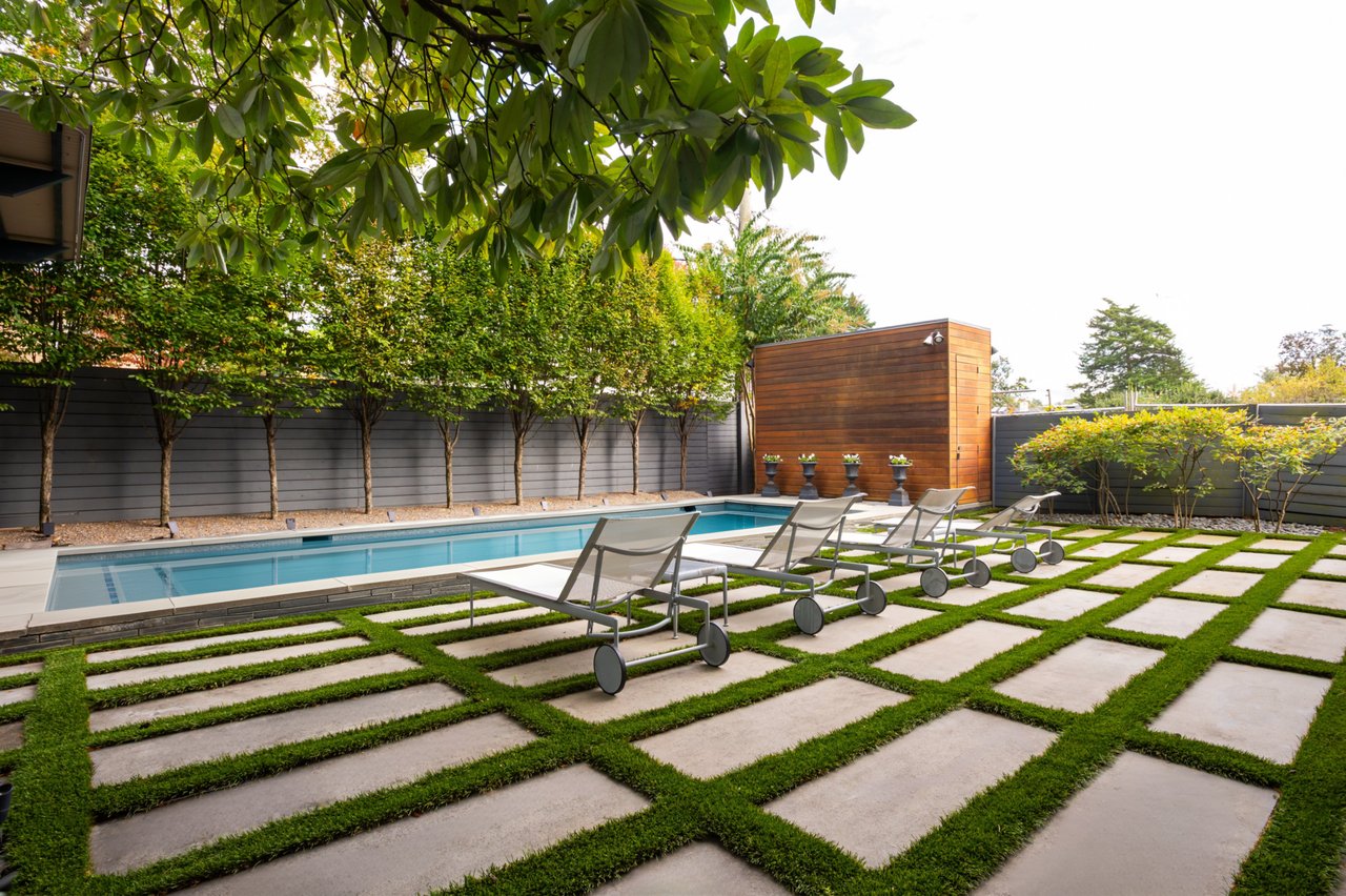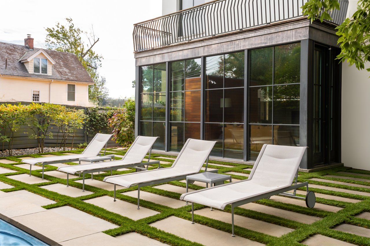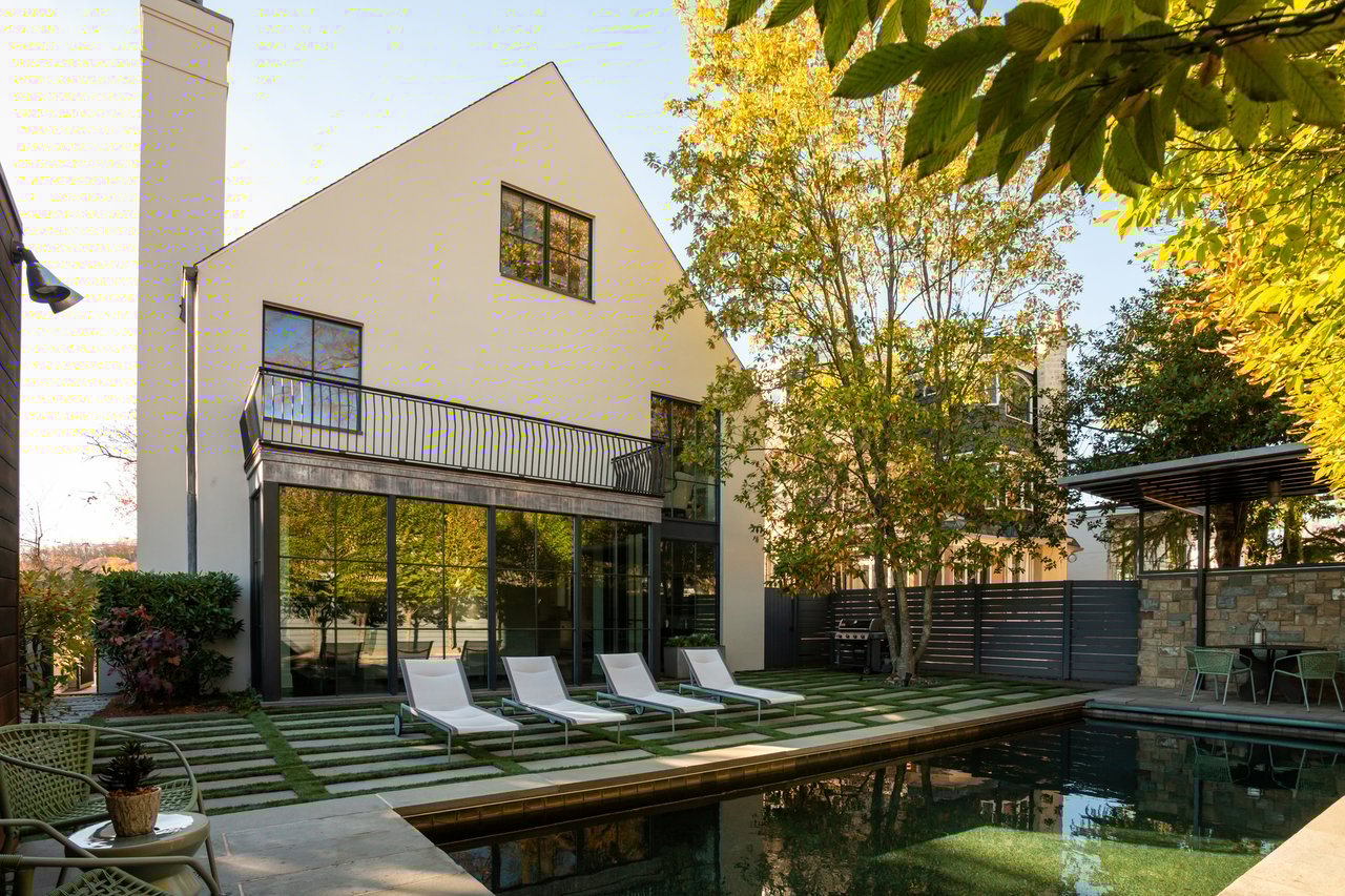 Ascending to the top of the sky-lit stairs reveals two more generous bedrooms and a shared, fully-tiled bath with marble vanity. The lower level recreation room is equipped with a series of in-ceiling Sonos speakers and can be effectively utilized as a professional media room. Additionally on the lower level is a fully self-sufficient guest suite complete with kitchenette and full bath. A minimalist haven, the rear outdoor space revolves around a spectacular lap pool equipped with an automatic retractable cover, set against a linear fence and row of uplit trees. The patio consists of stone slabs with an interwoven turf grid in the quintessential Southern California style. A covered al fresco dining area greatly enhances outdoor entertaining utility, and the entire area is basked in warm ambient lighting after the sun sets. The home’s location is one nearly without peers, walkable to Claudio’s Table and Et Voila, as well as mere minutes to Virginia via Chain Bridge and Canal Road. A truly rare blend of curated interior spaces and uncompromising outdoor space, Potomac Avenue NW is undoubtedly one of Washington's hidden gems.